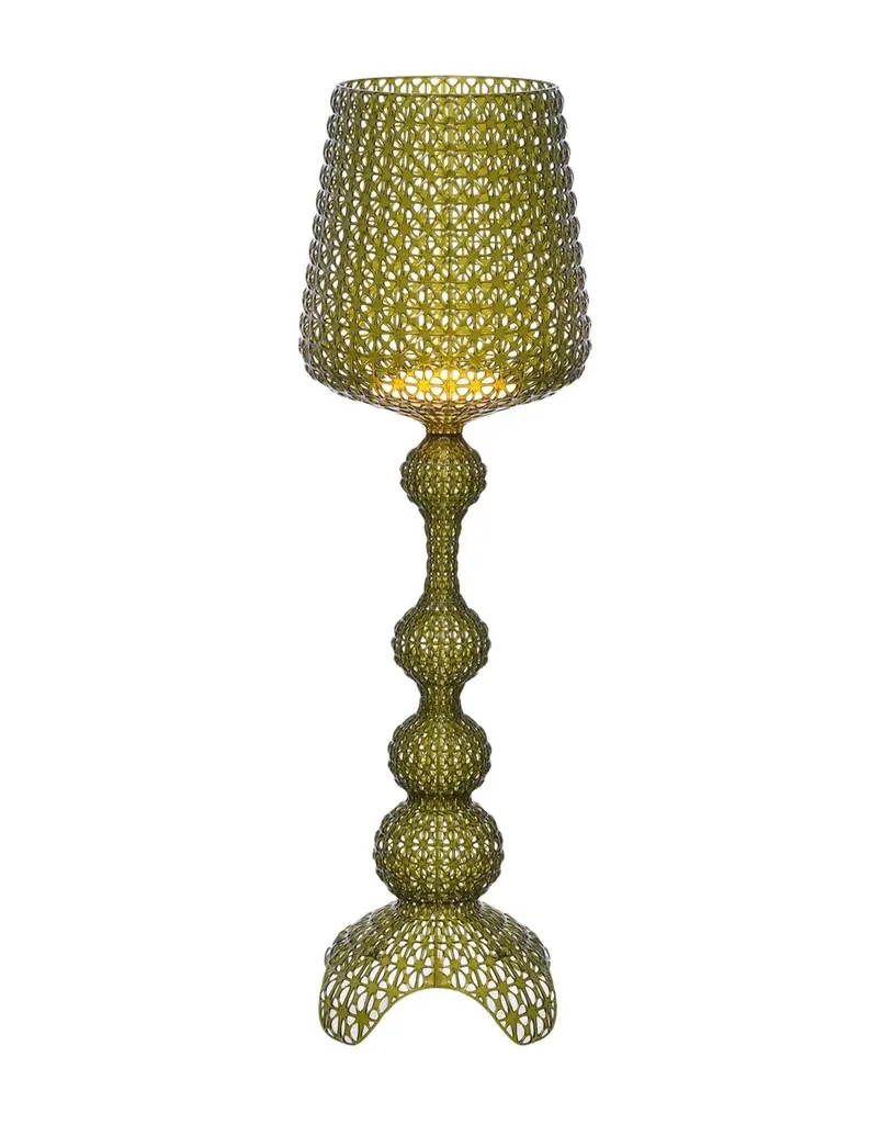The Kabuki floor lamp is injection moulded. The technology used makes it possible to create a woven structure similar to lace with a unique perforated surface through which the light is diffused. Available in indoor and outdoor versions.