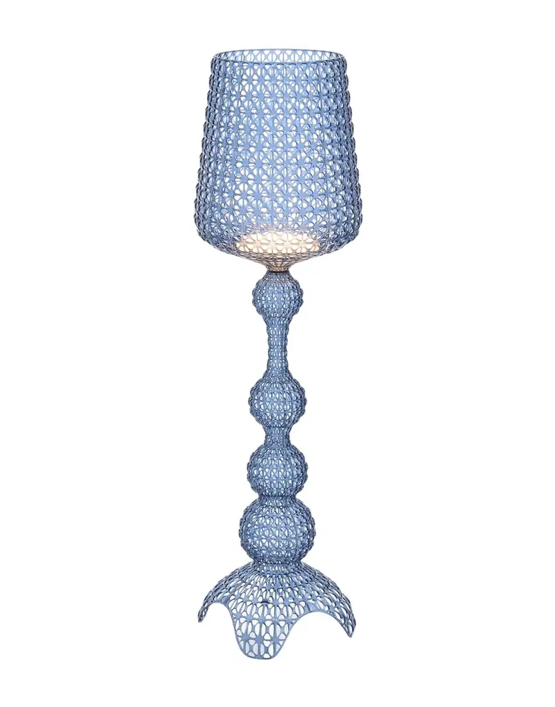 The Kabuki floor lamp is injection moulded. The technology used makes it possible to create a woven structure similar to lace with a unique perforated surface through which the light is diffused. Available in indoor and outdoor versions.