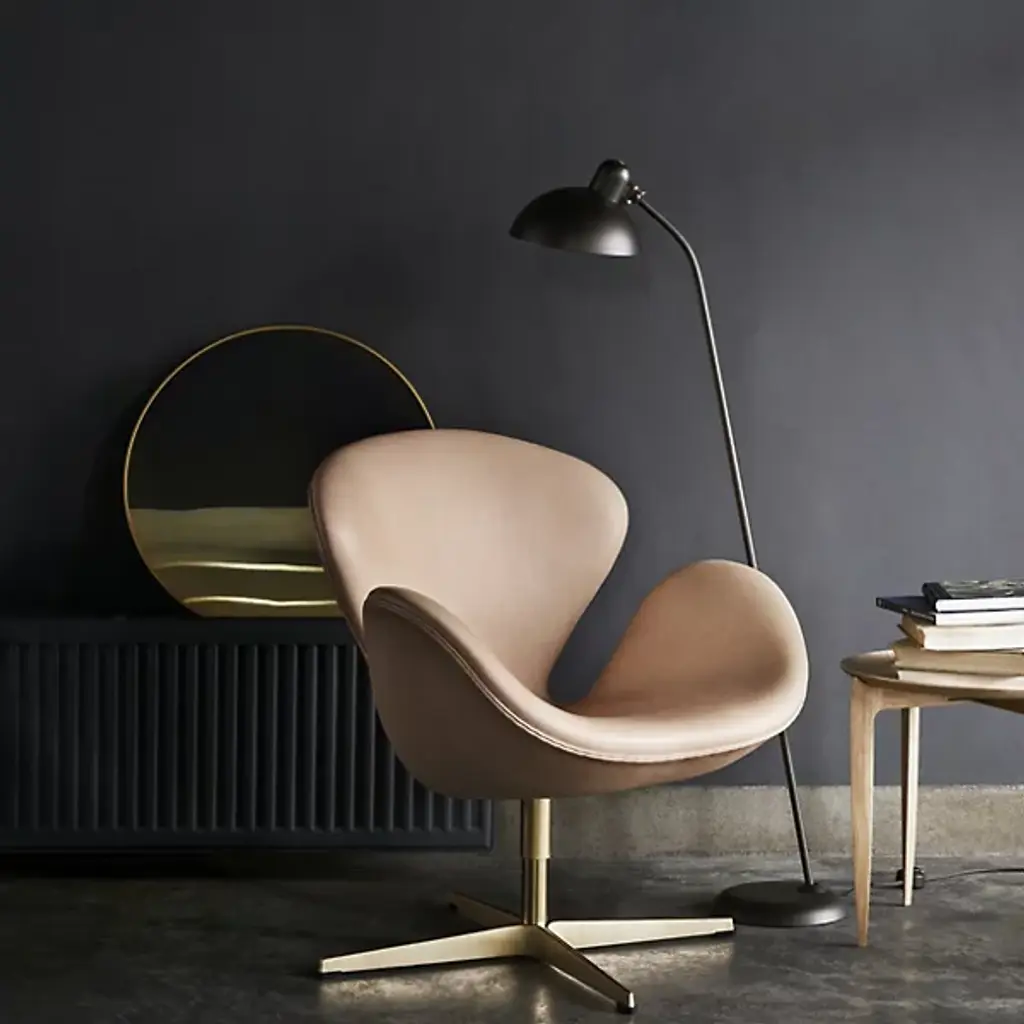 The Kaiser idell Floor Lamp from Fritz Hansen is designed by Christian Dell. Its design can be traced back to the 1930s, yet it remains contemporary to this day. It features a slender body that curves sinuously at the top, providing support for a sturdy shade of chrome-plated brass. Greenguard Certification represents a commitment to meeting strict low chemical emissions standards. This floor lamp is stabilized by a baseplate and is illuminated by an LED.