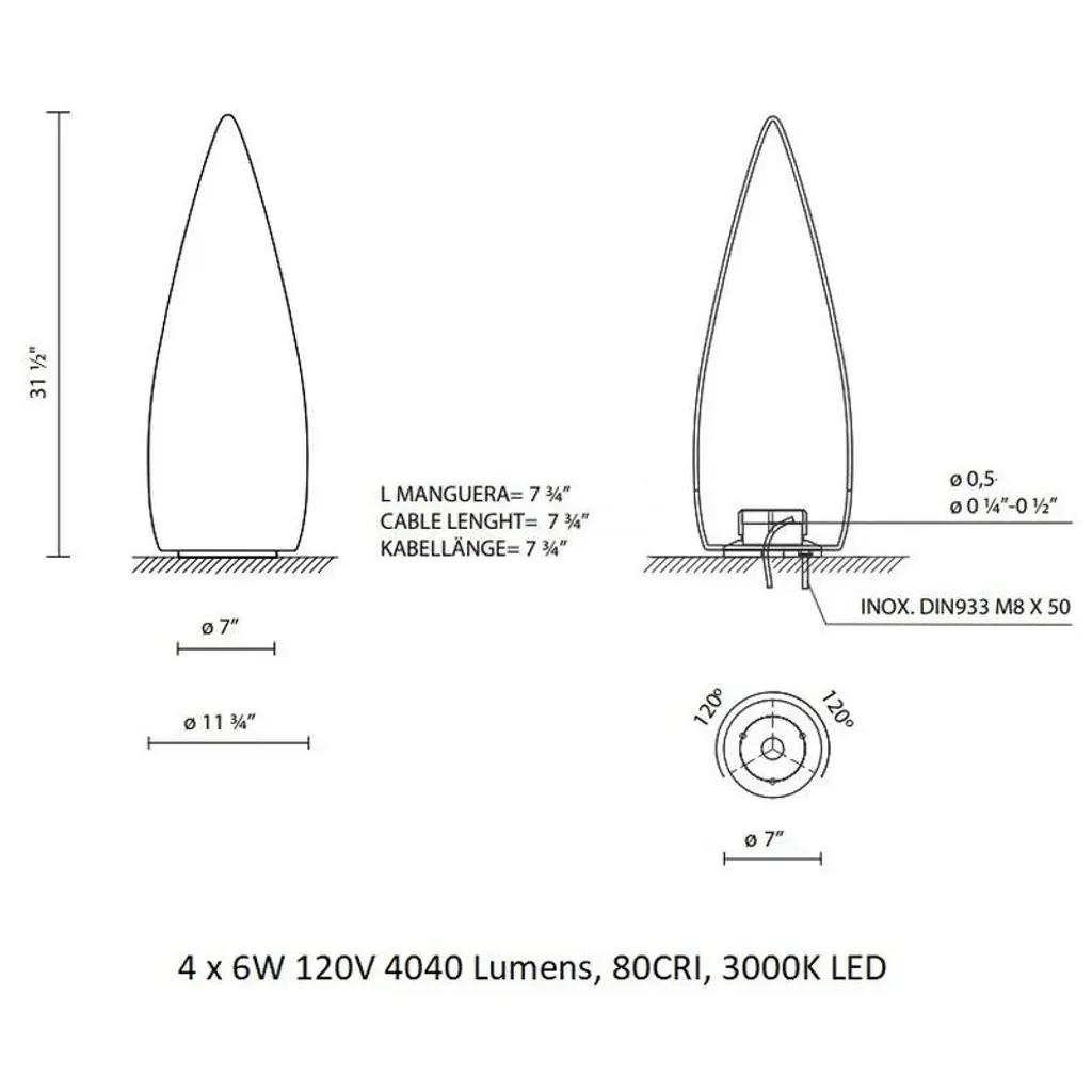 Indoor and outdoor lamps, in a smooth opal white finish, made from vandal-proof UV resistant polyethylene (PE). Available in different versions. Kanpazar 150A is fixed to the ground and hard-wired, while Kanpazar 150B is portable and has a maximum wiring connection of 11.5 feet. Kanpazar 150C, which has a concrete base, is portable and has a maximum wiring connection of 11.5 feet. Kanpazar 150 is also available in an additional version D made from a stainless steel base that is secured to the ground with the connection provided. Features
