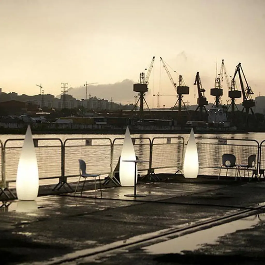 Indoor and outdoor lamps, in a smooth opal white finish, made from vandal-proof UV resistant polyethylene (PE). Available in different versions. Kanpazar 150A is fixed to the ground and hard-wired, while Kanpazar 150B is portable and has a maximum wiring connection of 11.5 feet. Kanpazar 150C, which has a concrete base, is portable and has a maximum wiring connection of 11.5 feet. Kanpazar 150 is also available in an additional version D made from a stainless steel base that is secured to the ground with the connection provided. Features