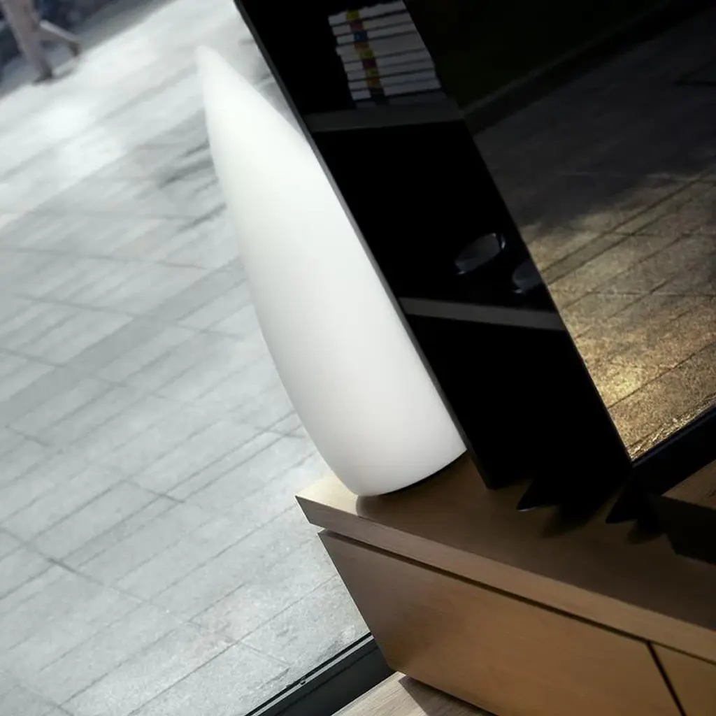 Indoor and outdoor lamps, in a smooth opal white finish, made from vandal-proof UV resistant polyethylene (PE). Available in different versions. Kanpazar 150A is fixed to the ground and hard-wired, while Kanpazar 150B is portable and has a maximum wiring connection of 11.5 feet. Kanpazar 150C, which has a concrete base, is portable and has a maximum wiring connection of 11.5 feet. Kanpazar 150 is also available in an additional version D made from a stainless steel base that is secured to the ground with the connection provided. Features
