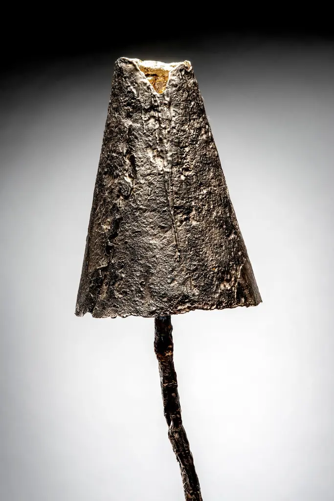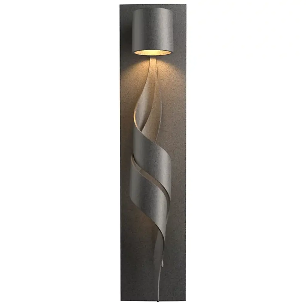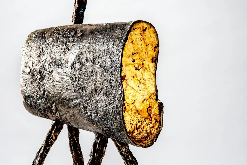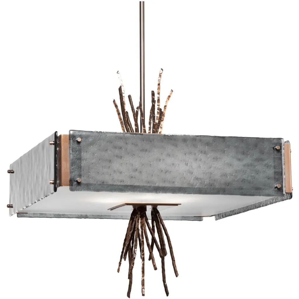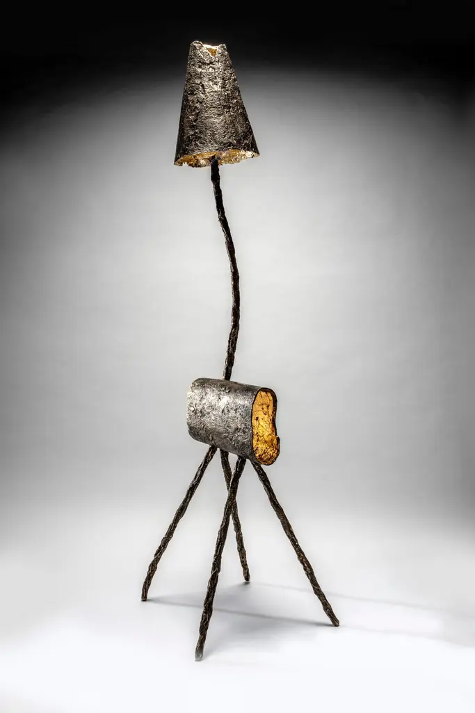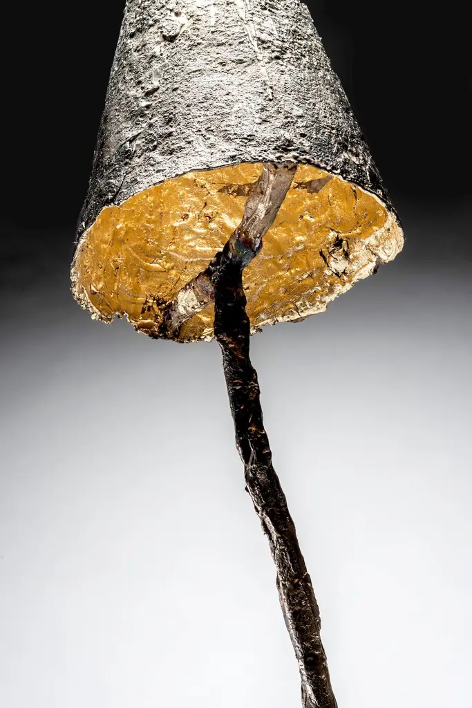 Hand Cast LIght Sculpture, with lower and upper sections illuminated with dimmer switch. Gold leaf interior. Cloth wrapped cord.