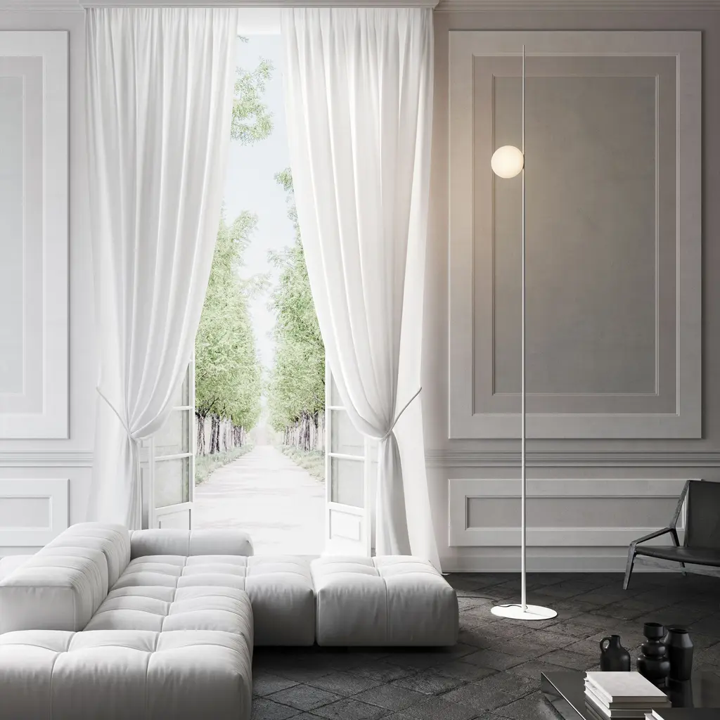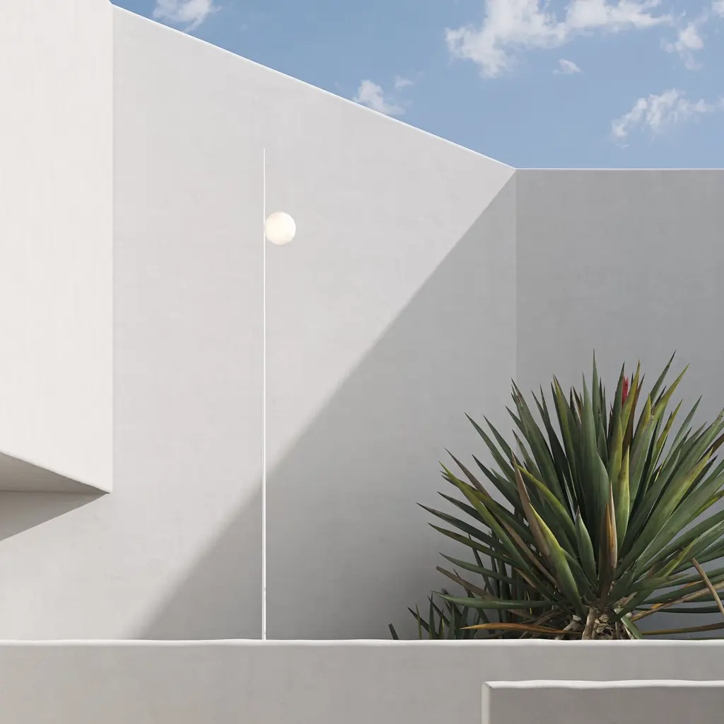 Atmosphere is a lamp designed by the Italian lighting company, Karman. The lamp features a unique design that combines aesthetic appeal with functionality, making it suitable for both indoor and outdoor use. Atmosphere is designed to resemble a blade of grass with a drop of dew on it, with a reflective sphere above it. The lamp is constructed from high-quality materials, including a knurled fiberglass bar painted in white or black, a round metal base, and a spherical luminous body made of PVC. The lamp is available in different heights and with stake and ground attack options, providing versatility in its use. In summary, Atmosphere is a beautifully designed lamp that combines unique aesthetics with functional features. Its design and use of high-quality materials make it a versatile and durable lighting option for both indoor and outdoor spaces.