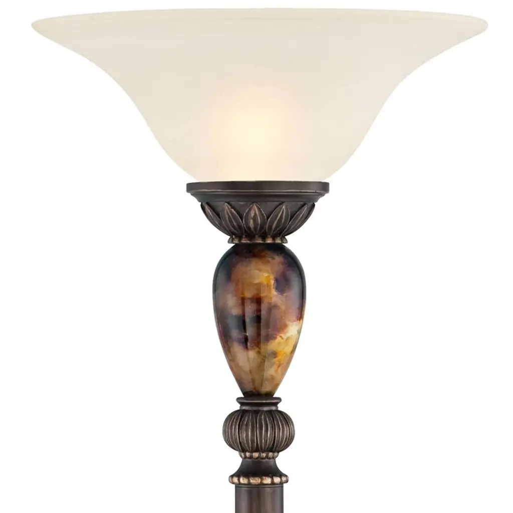 Kathy Ireland Vintage Torchiere Floor Lamp 72" Tall Bronze Tortoise Shell Font Frosted Glass Shade For Living Room Reading House