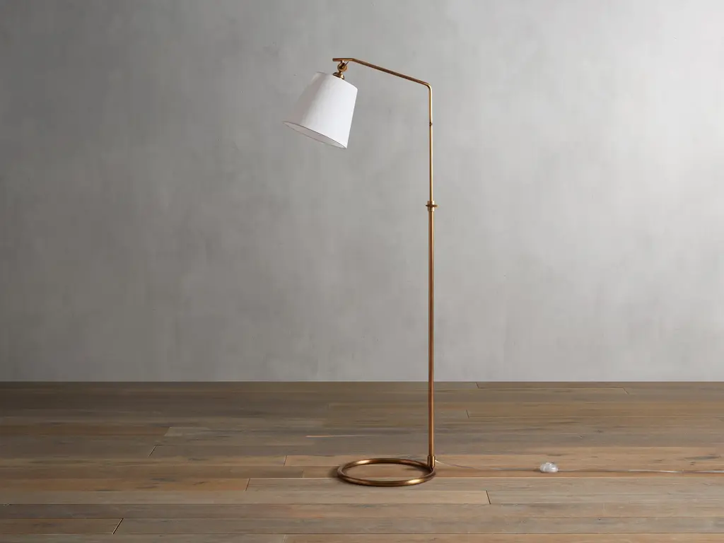 Our Kellen Lighting Collection features table lamps and floor lamps crafted from solid iron with antiqued brass or aged brass finishes complemented by contrasting linen shades. Kellen’s adjustable arms tilt, pivot, and raise or lower to meet your preferred angle, while the unique circular bases provide visual interest for any room in your home.