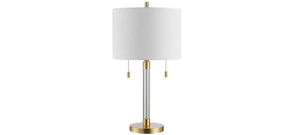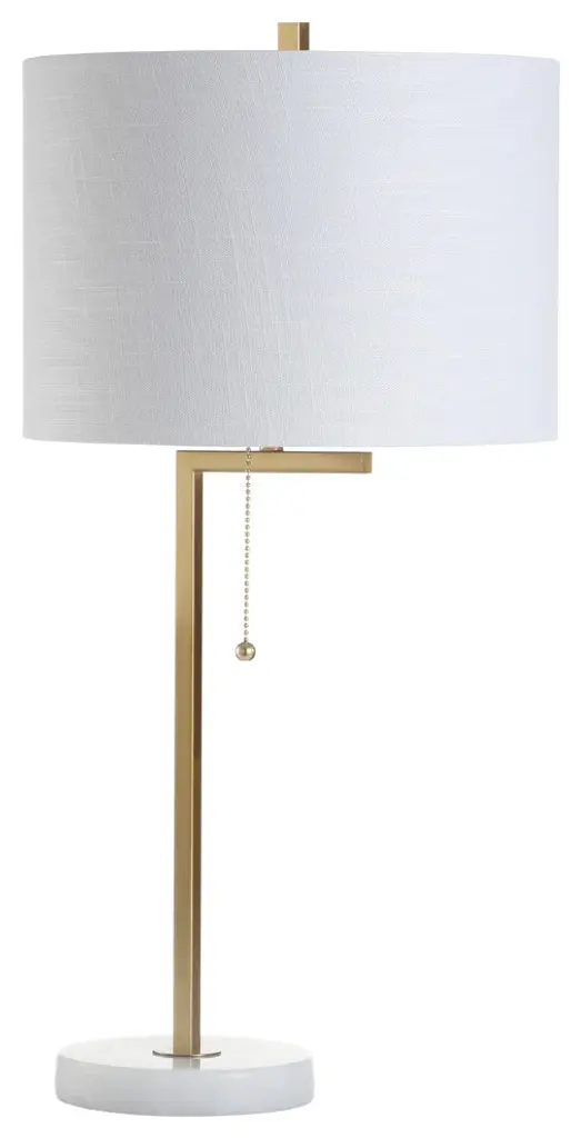 Durable Metal ConstructionStick lampPull chain switchHardback linen shadeWeighted base for added stabilityShips in one carton