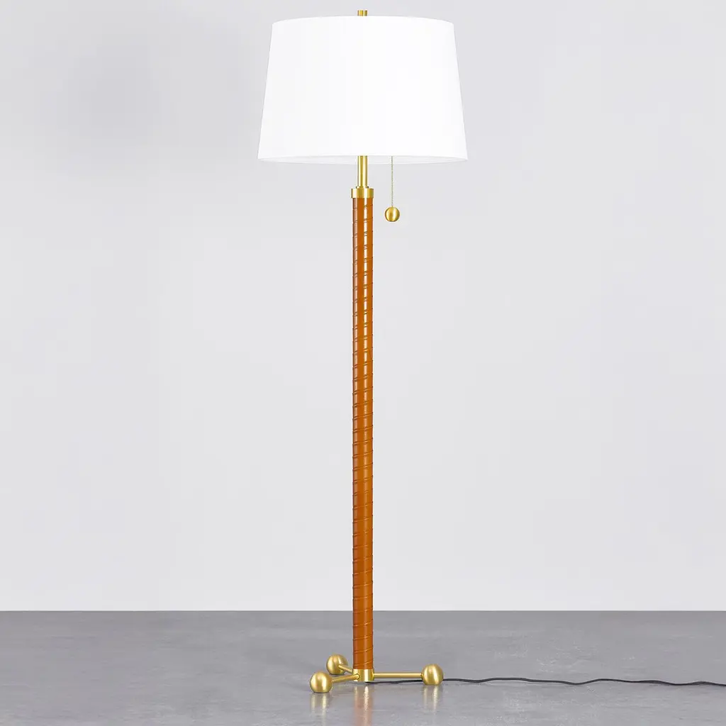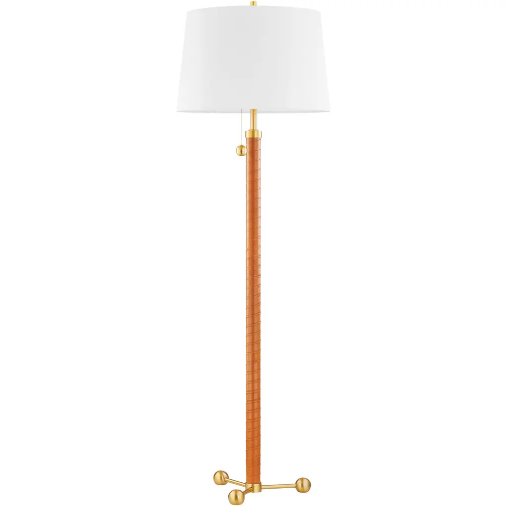 Kenji Leather Wrapped Floor Lamp, Brown/aged Brass
