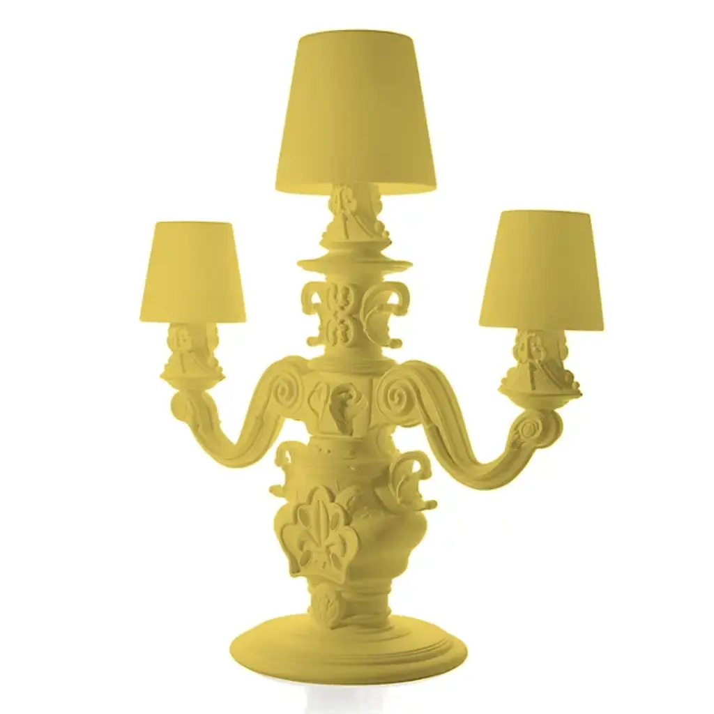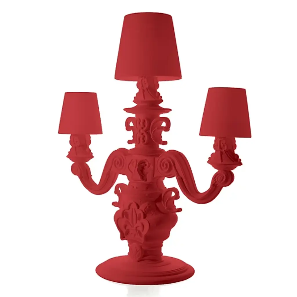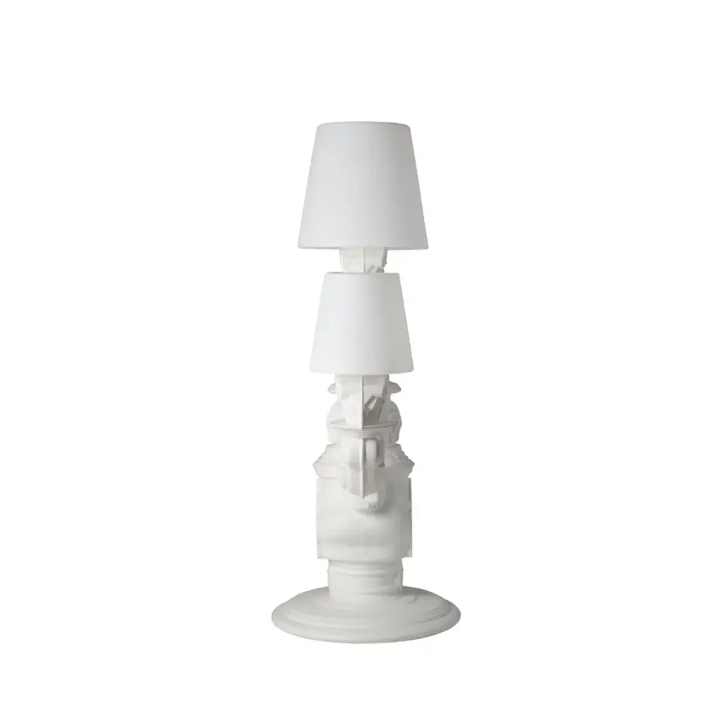 King of Love is a majestic floor lamp that gets the area it occupies. Graziano Moro and Renato Pigatti make richer the Design of Love collection with King of Love floor lamp: its stem reminds baroque style, while the three bright white luminous lampshades are embellished with a classic texture to obtain a sophisticated, elegant and pleasing decor. King of Love is made in polyethylene and this material gives to it an ironic and pop style, as the whole Design of Love collection.Lamp body finish:- Standard color- Glossy lacquered- Matt lacqueredStandard version light sources- E27 - 2 x 10W + 1 x 15W- RGBW LED includedLacquered version light sources2 x 10W - A65 / E271 x 15W - G95 / E27