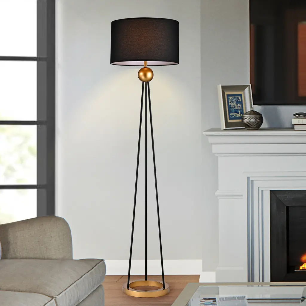 Kirsten Matte Black+gold With Black Laminated Fabric Drum Shade 1-Light Floor Lamp - Matte Black+gold