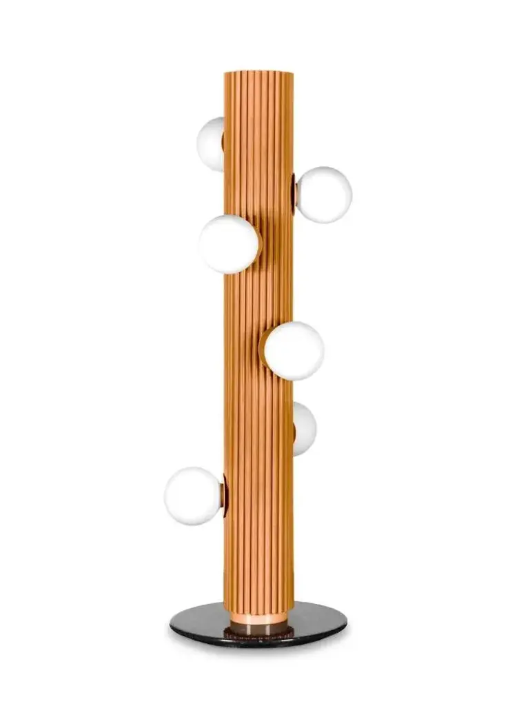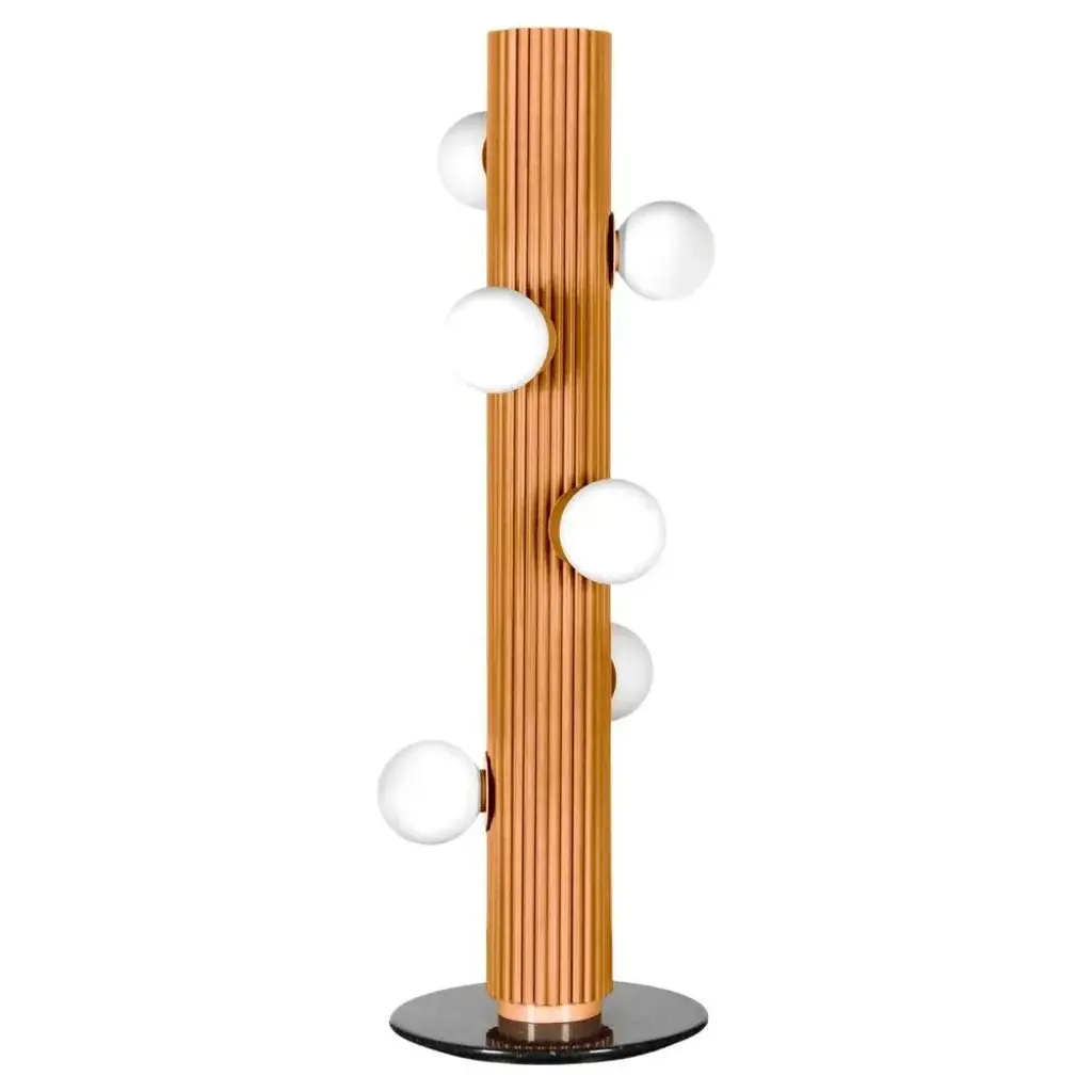 Kleos floor lamp by royal stranger dimensions: d 60 x w 62 x h 190 cm materials: lacquer with glossy finish, blown glass opal diffuser, base polished guatemala green marble. Available in brass, stainless steel and copper with polished or brushed finish, or lacquered in all ncs/ral colors with matte or glossy finish. Base available in carrara marble, nero marquina, estremoz, rose estremoz, guatemala green and emperador with polished or honed finish. Kleos floor lamp echoes ancient canons of balance and proportion. With a flat circular base springing from the ground, it builds itself onto a fluted vertical structure. The main body is surrounded by interspersed opal blown glass diffusers creating a tuneful, dynamic composition. this piece is attributed to the mentioned designer/maker. It has no attribution mark and no official proof of authenticity, however it is well documented in design history. I take full responsibility for any authenticity issues arising from misattribution, up to 250v (europe/uk standard).