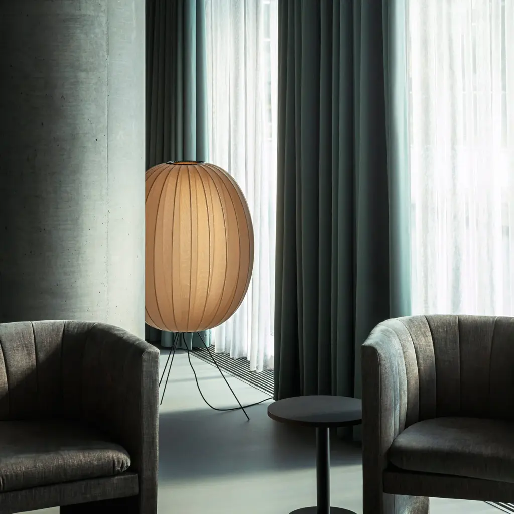 A bold geometrical shape meets a knitted material that’s as cozy as a favorite sweater in Knit-Wit’s floor lamp. The glowing ball of light held aloft on a trio of thin metal legs recalls traditional Chinese paper shades. With the yarn’s open texture, the lampshade both hides and reveals the source of light at its center. “We challenged the barriers of technology,†say design duo Iskos-Berlin, “and came up with something completely new.â€