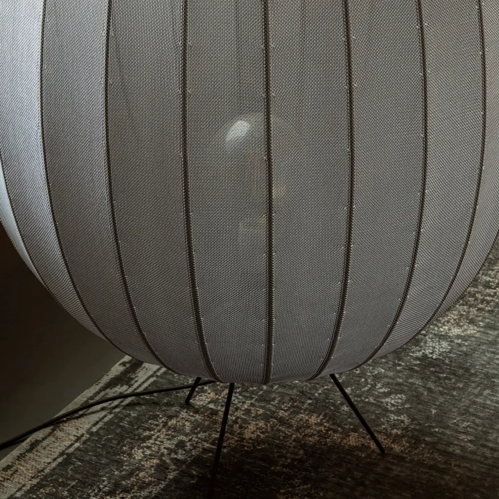 A bold geometrical shape meets a knitted material that’s as cozy as a favorite sweater in Knit-Wit’s floor lamp. The glowing ball of light held aloft on a trio of thin metal legs recalls traditional Chinese paper shades. With the yarn’s open texture, the lampshade both hides and reveals the source of light at its center. “We challenged the barriers of technology,” say design duo Iskos-Berlin, “and came up with something completely new.”