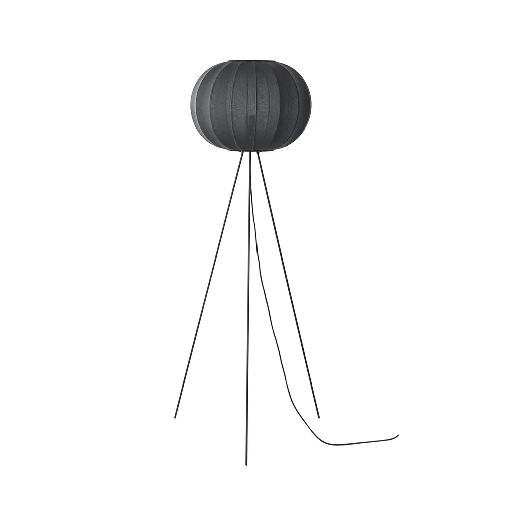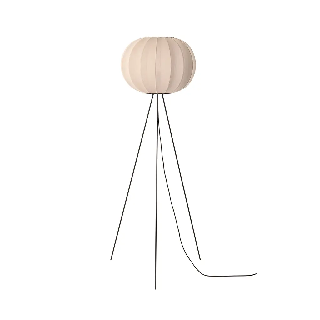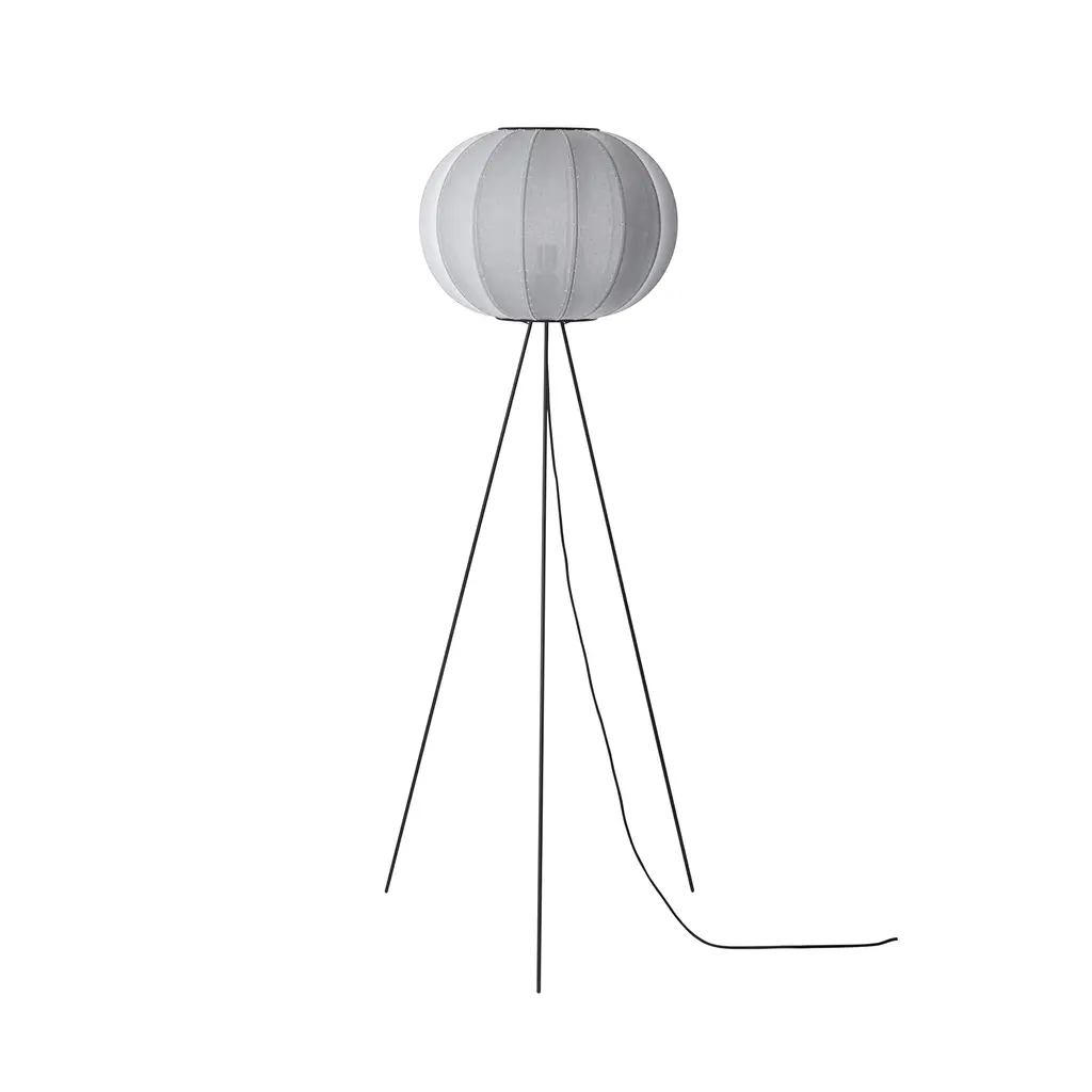 Creating a warm atmosphere in a room is easy with the Made by Hand Knit-Wit High Floor Lamp 45. Design duo Iskos Berlin created the floor lamp with a textile shade that not only filters the light beautifully, but also references traditional knitting techniques. Fine yet durable, the mesh fabric comes to life through CNC knitting, resulting in a 3D pattern with virtually zero waste. The spherical shade has a wonderful structure created by wrapping the textile over a steel frame. Above and below, powder-coated aluminum rings hold the two components together. The lightweight lamp features three slender legs that raise the light source higher to illuminate spaces at eye-level. Thanks to the knitted fabric shade, this floor lamp produces a soft ambient light. Perfect for residential or public areas, the Made by Hand Knit-Wit High Floor Lamp 45 comes in a wide range of colors.