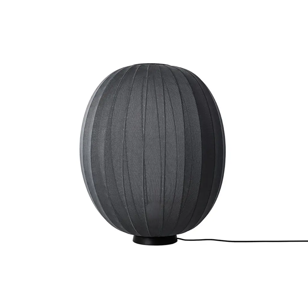 Soft, diffused light passes through the open-knit mesh of the Knit-Wit Level Floor Lamp, creating a gentle glow. Its three-dimensional knitted polyester shade filters light evenly, emphasizing the texture and structure of the material. The lamp stands on a slim, unobtrusive base that supports its lightweight form. Available in multiple sizes and color options, it fits into a range of interior settings, from private rooms to shared spaces.