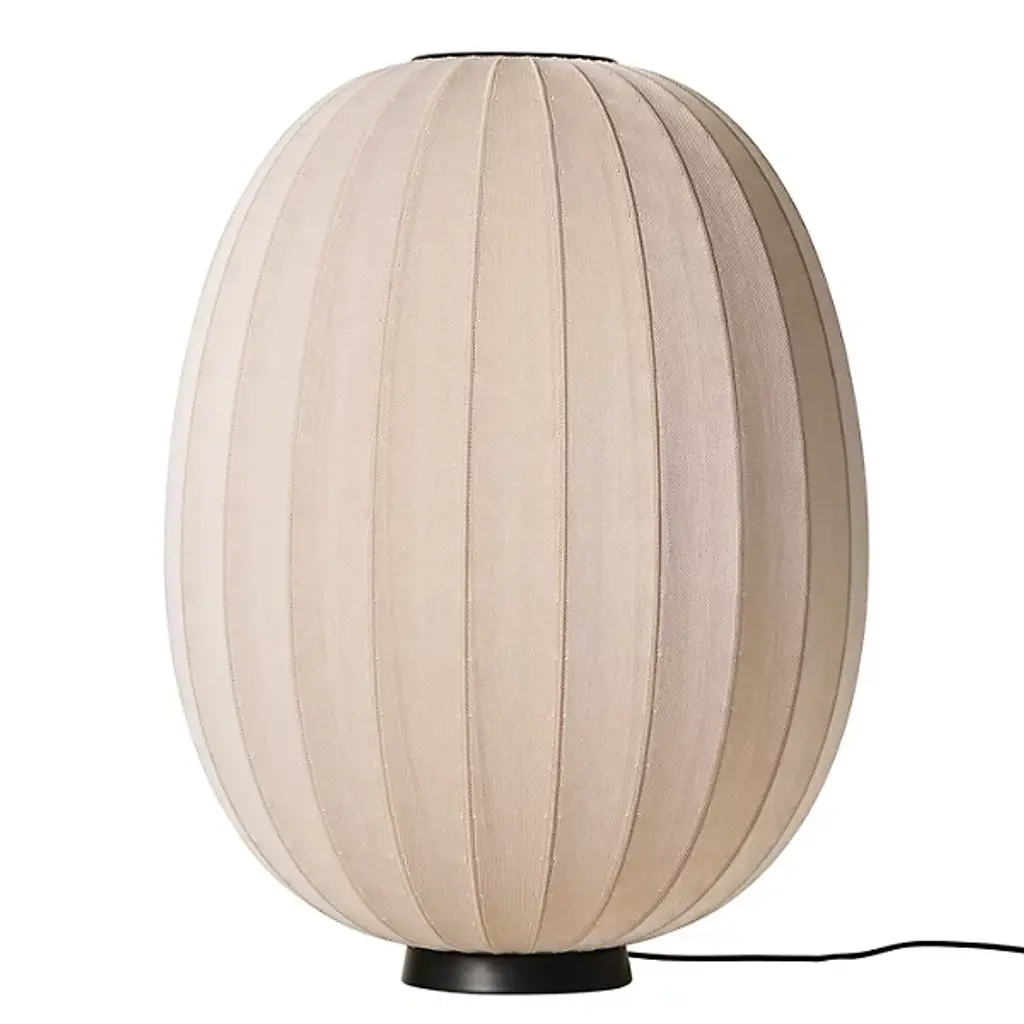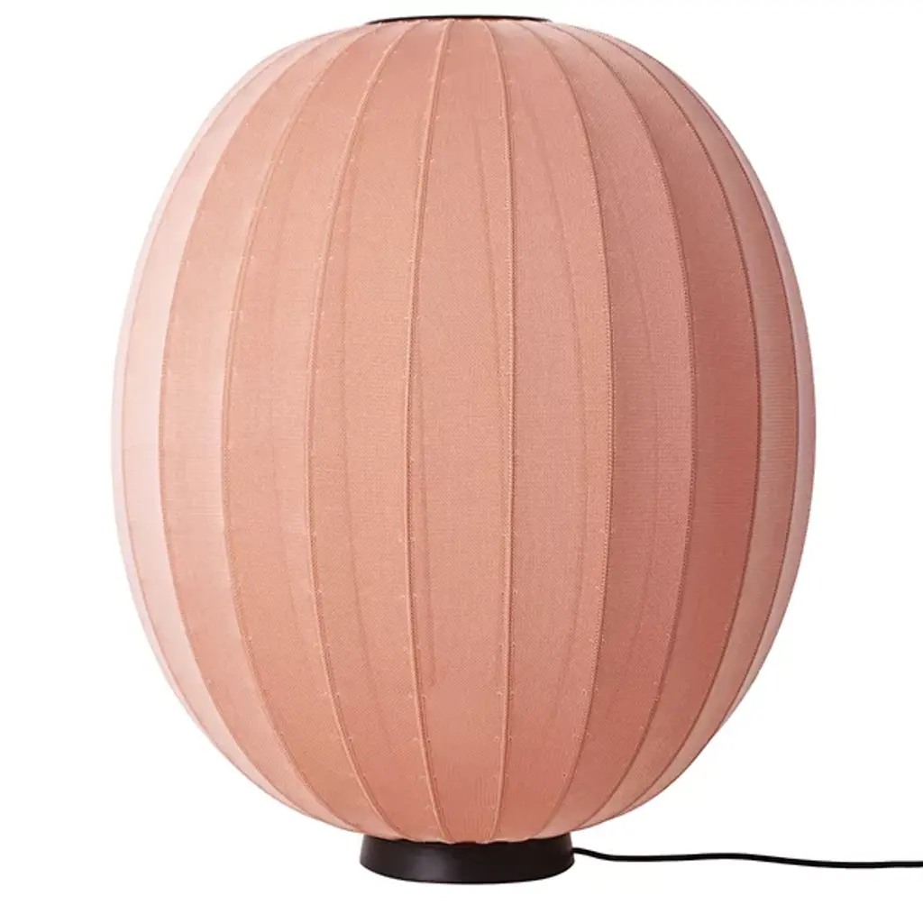 The Knit-Wit Level Oval Floor Lamp from Made by Hand combines contemporary materials with a cozy, organic form. Designed by Iskos-Berlin—the team of Boris Berlin and Aleksej Iskos, it shows off a ribbed internal frame enveloped by a 3D-knitted, flame-retardant polyester shade, offering both texture and transparency. The gently curved silhouette rests on a simple round base, casting soft, even illumination while revealing the lamp’s delicate inner structure in a warm, inviting glow.