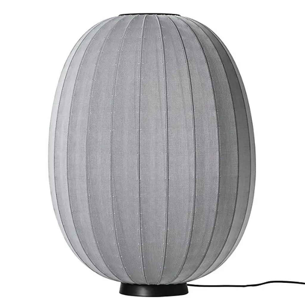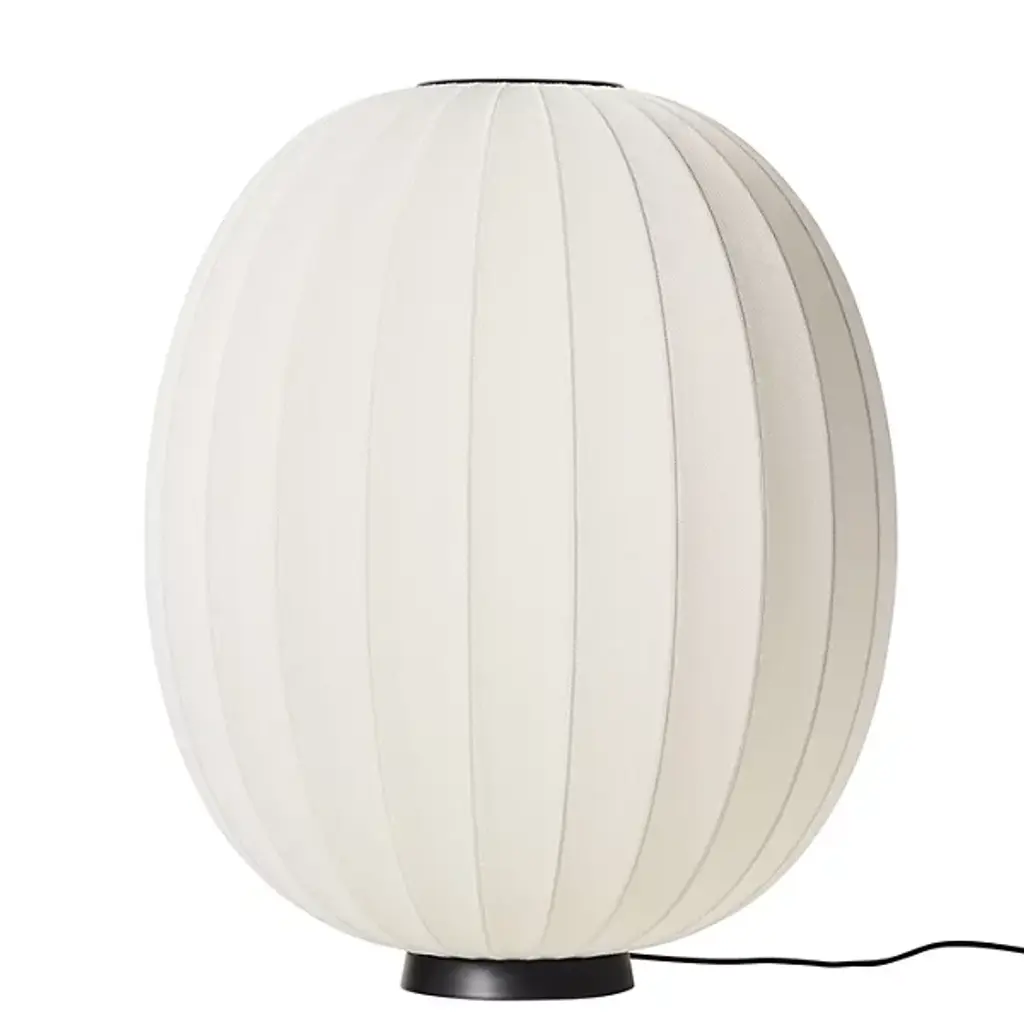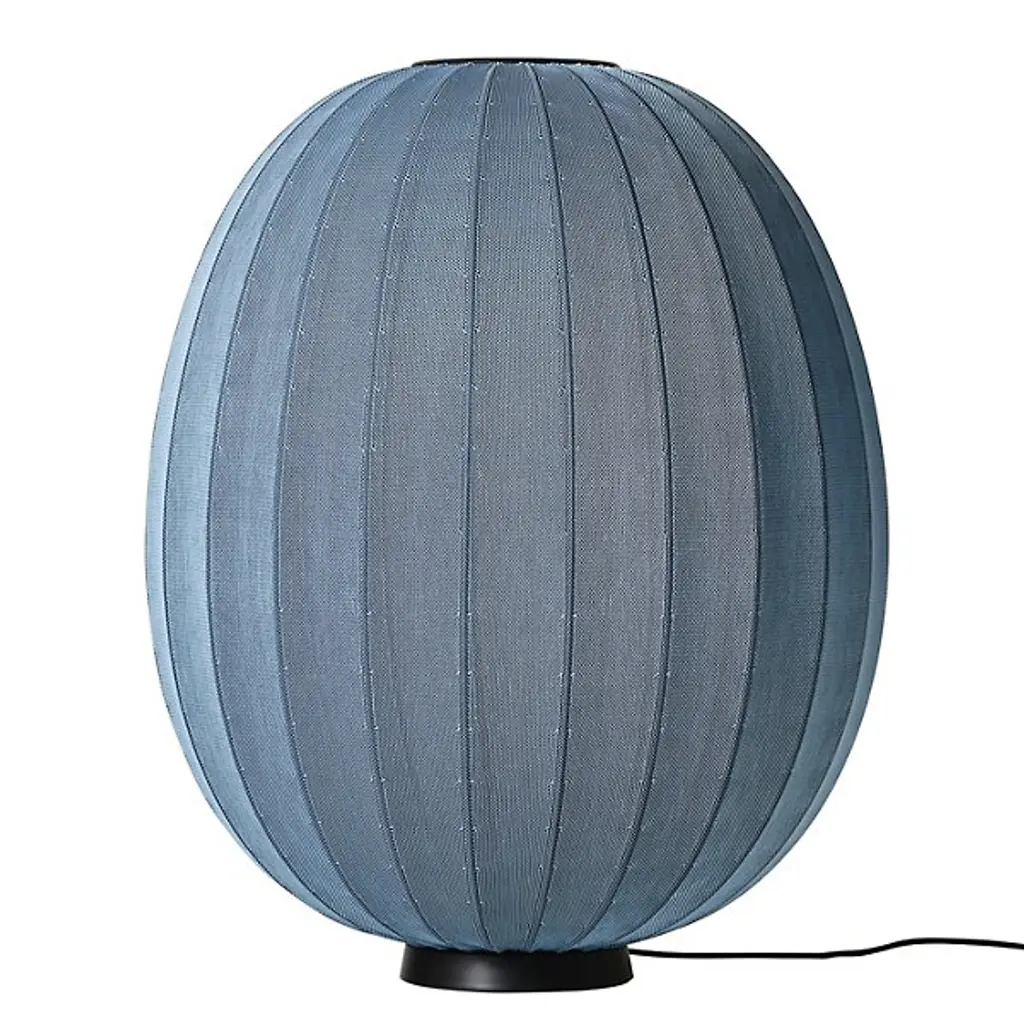 The Knit-Wit Level Oval Floor Lamp from Made by Hand combines contemporary materials with a cozy, organic form. Designed by Iskos-Berlin—the team of Boris Berlin and Aleksej Iskos, it shows off a ribbed internal frame enveloped by a 3D-knitted, flame-retardant polyester shade, offering both texture and transparency. The gently curved silhouette rests on a simple round base, casting soft, even illumination while revealing the lamp’s delicate inner structure in a warm, inviting glow.