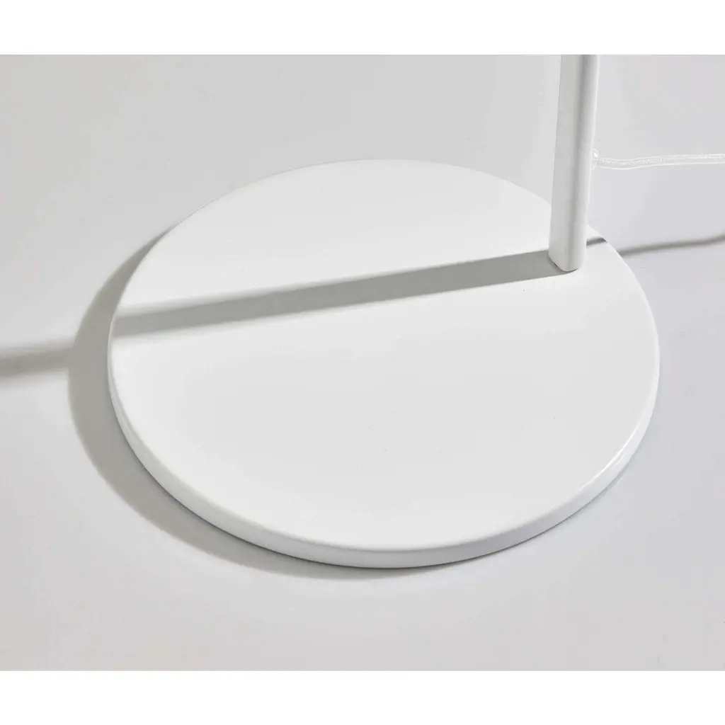 Bring a unique visual impression to your space with the contemporary Knot LED floor lamp. The round base and thin tube in white finish present clean lines that are accented by decorative flourishes at each of the two inflection points. The direction and height of the light can be adjusted at these points, allowing you to direct the light wherever it's needed. Whether it is positioned to be tall and narrow for a room corner or angled for accent lighting behind sofas or recliners, this floor lamp is the ideal choice for any sized space. The long, narrow integrated LED brightens any room with 650 lumens diffused through a frosted shade, while the 3,000K color temperature adds a touch of warmth and intimacy. A discreet 4-way touch switch adjusts the brightness between low, medium, high, and off, allowing you to select the perfect lighting level for your needs. A white fabric-covered cord completes the monochrome design. The floor lamp is also available in black finish to complement industrial or modern stylings. Complete your décor with the coordinating Knot LED desk lamp.