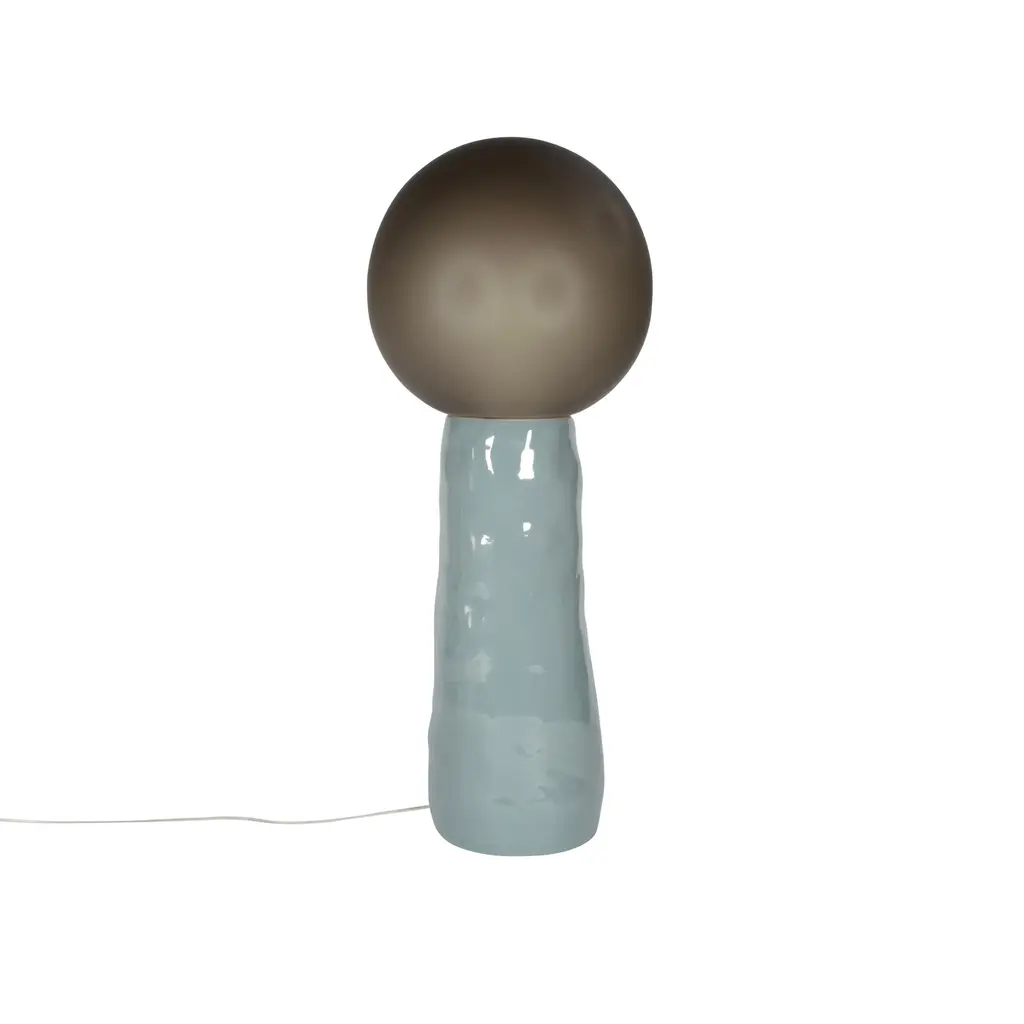 Kokeshi high grey acetato grey floor lamp by pulpo. Dimensions: d60 x h150 cm. Materials: glass and ceramic. Also available in different finishes: white acetato white, grey acetato white, white acetato grey, grey acetato grey, white acetato terracotta, grey acetato terracotta. Designer kai linke, who has a high affinity towards japan, illuminates the traditional kokeshi dolls and their lean, oval shape. The stylised versions of the carved originals have a ceramic torso, the carefully crafted, hand-blown glass head radiates in white or a dim grey.each piece is created from frosted and coloured handblown glass. The base is produced in ceramic and a glossy glaze. All our lamps can be wired according to each country. If sold to the usa it will be wired for the usa for instance. up to 250v (europe/uk standard).