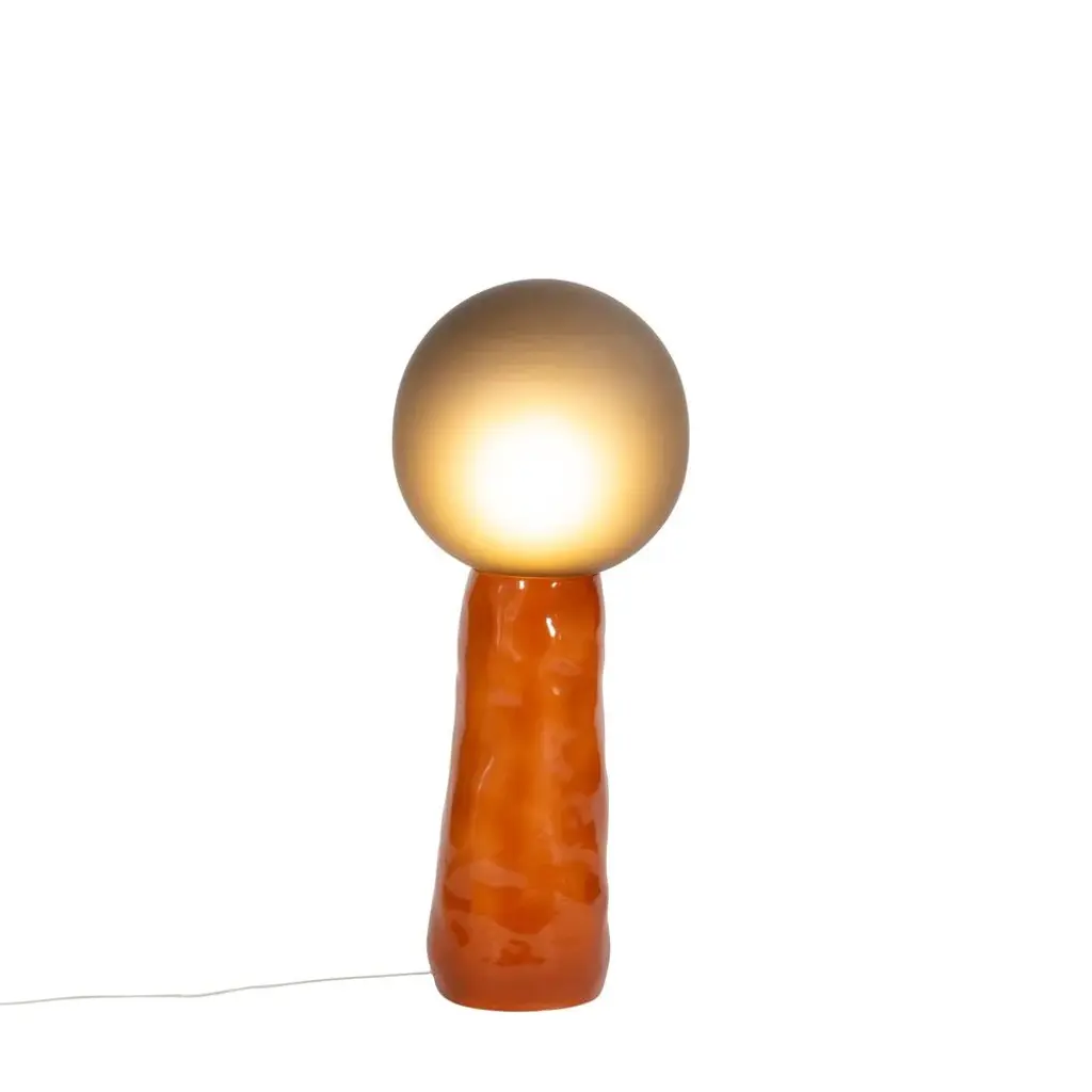 Kokeshi medium grey acetato white floor lamp by pulpo. Dimensions: d45 x h112.5 cm. Materials: glass and ceramic also available in different finishes: white acetato white, grey acetato white, white acetato grey, grey acetato grey, white acetato terracotta, grey acetato terracotta. Please contact us. Designer kai linke, who has a high affinity towards japan, illuminates the traditional kokeshi dolls and their lean, oval shape. The stylised versions of the carved originals have a ceramic torso, the carefully crafted, hand-blown glass head radiates in white or a dim grey.each piece is created from frosted and coloured handblown glass. The base is produced in ceramic and a glossy glaze. All our lamps can be wired according to each country. If sold to the usa it will be wired for the usa for instance. up to 250v (europe/uk standard).
