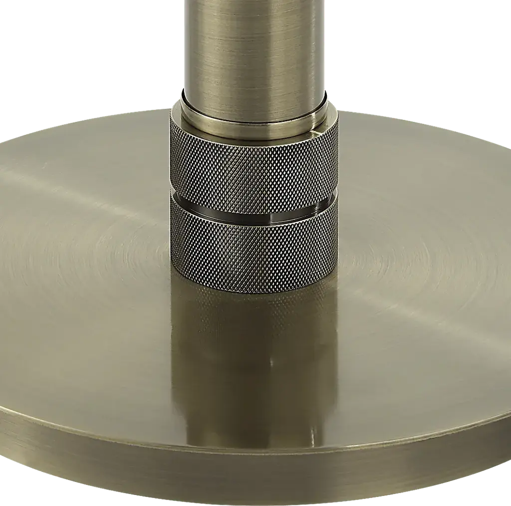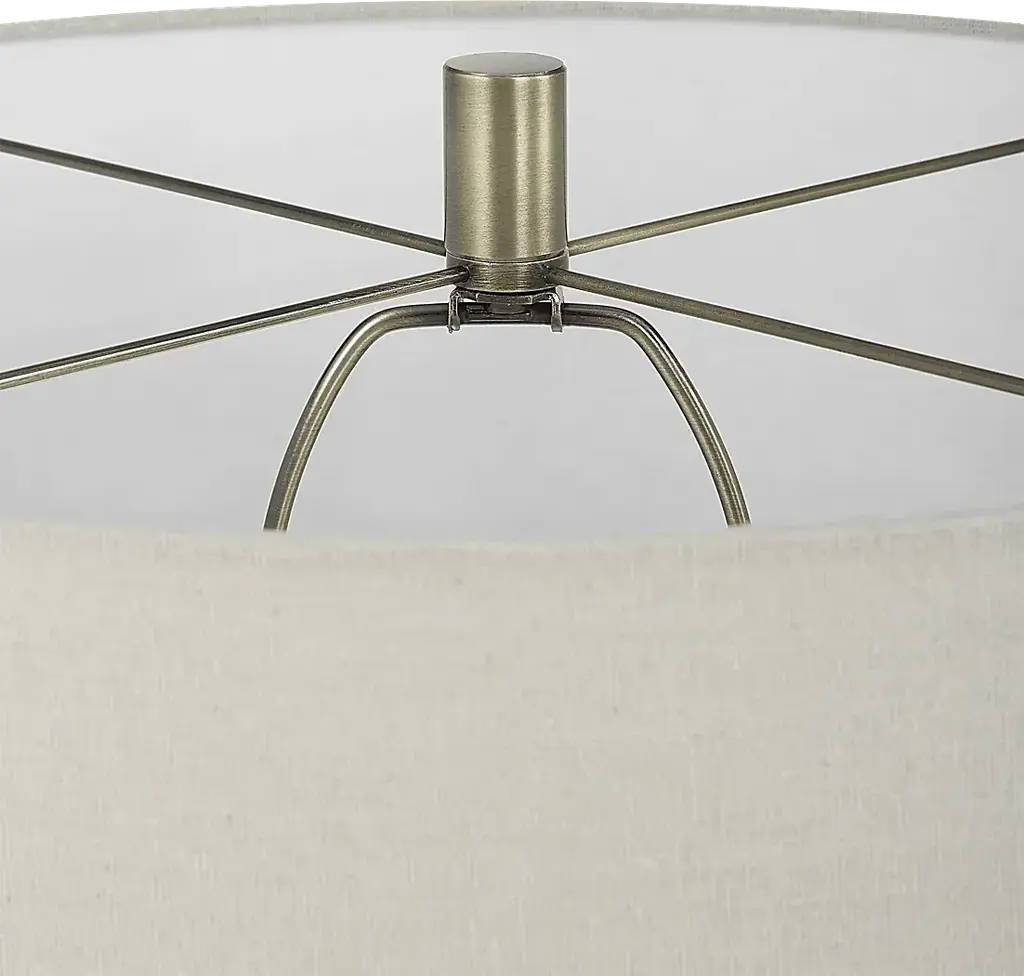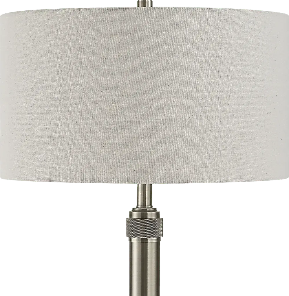 Finished in an antique brass, the Kolb Drive Brass Floor Lamp features a simple, but sleek profile. The simplicity is elevated with the diamond knurl details that adorn the body. A round off-white linen shade completes the look, making this floor lamp the perfect addition to any room seeking a touch of refinement. Partial assembly may be required.