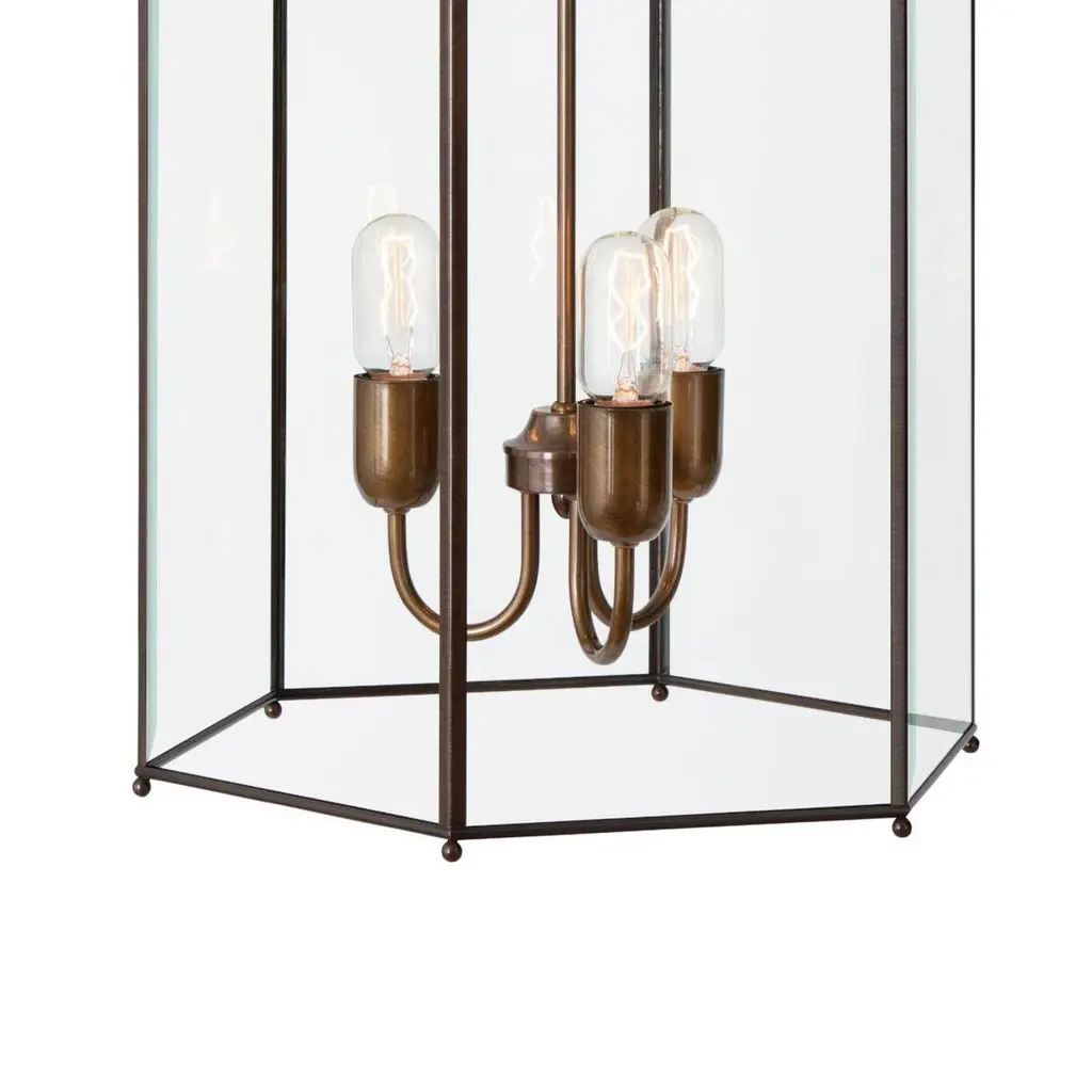 Ceiling lamp model Glimminge designed by Konsthantverk and manufactured by themselves. A lamp that they still produce by hand. Truly comes into its own in Classic settings.Three different sizes in brass, oxidized brass or black-lacquered brass. Also available as a wall lamp.The production of lamps, wall lights and floor lamps are manufactured using craftsman’s techniques with the same materials and techniques as the first models.Materials and color:Oxideized brass/clear faceted glassDimensions:Depth 16.14 in x height 22.83 in, total height 60.62 inDepth 41 cm x height 58 cm, total height 154 cmTechnical details:Max 3 x 60 W E27Mounting: Hook mountedConnection: Swedish plug, terminal in canopyThe lamps are wired with standard European wiring.Not UL listed.Indoor use and dry locations only.This lamp is wired for Europe, if used in US or any other country the client will need to convert it.Konsthantverk means “Art” and ‘Craftsmanship’, this Swedish company has been manufacturing lamps for nearly one hundred years. They do all the process: milled, drilled, formed and finished. For several years they ran through its own glassworks in Småland for the manufacture of his lamps glass.They have an entire collection for consumers, but they also produce special products as street lighting on Biblioteksgatan in Stockholm or the ceiling lighting at the Kennedy Center in Washington.The Konsthantverk lamps are honest about their dedication to materials and their process, a lamp made by them is a true handicraft. Their creations embodies simplicity and careful consideration, where materials and design are united.Each lamp from Konsthantverk has in itself a part of Swedish History, since 1921.