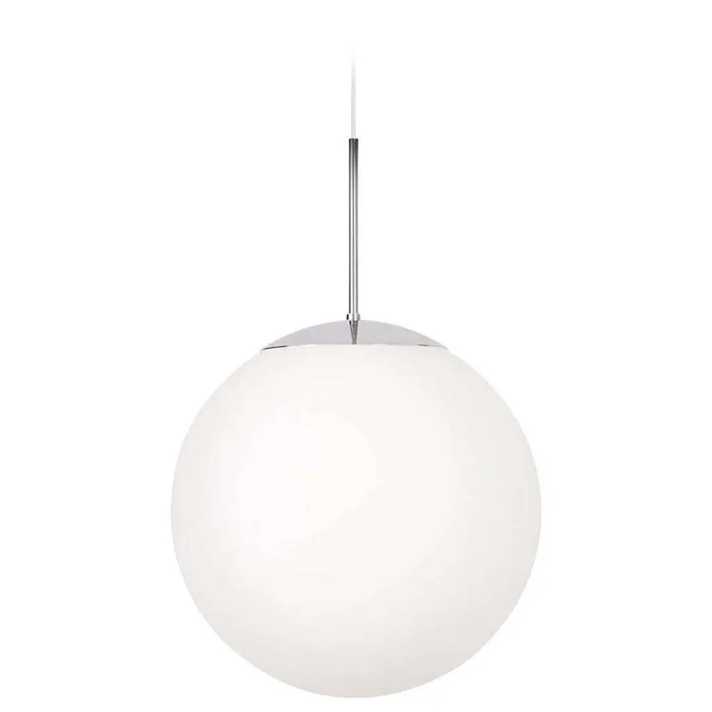 Ceiling lamp model Glob designed by Konsthantverk and manufactured by themselves. Incredibly beautiful in all its simplicity. Available in several different varieties and sizes. Raw brass or chrome combined with matte white opal glass. Available in other lengths and with other light sources.The production of lamps, wall lights and floor lamps are manufactured using craftsman’s techniques with the same materials and techniques as the first models.Materials and color:Chrome/Opal matDimensions:D 7.87 in x H 14.76 in, cord 39.37 inD 20 cm x H 37.5 cm, cord 100 cm Technical details:Max 60 W E27Mounting: hook mountedConnection: Swedish plug, terminal in canopyThe lamps are wired with standard European wiring. Not UL listed.Indoor use and dry locations only.This lamp is wired for Europe, if used in US or any other country the client will need to convert it.Konsthantverk means “Art” and ‘Craftsmanship’, this Swedish company has been manufacturing lamps for nearly one hundred years. They do all the process: milled, drilled, formed and finished. For several years they ran through its own glassworks in Småland for the manufacture of his lamps glass.They have an entire collection for consumers, but they also produce special products as street lighting on Biblioteksgatan in Stockholm or the ceiling lighting at the Kennedy Center in Washington.The Konsthantverk lamps are honest about their dedication to materials and their process, a lamp made by them is a true handicraft. Their creations embodies simplicity and careful consideration, where materials and design are united.Each lamp from Konsthantverk has in itself a part of Swedish History since 1921.