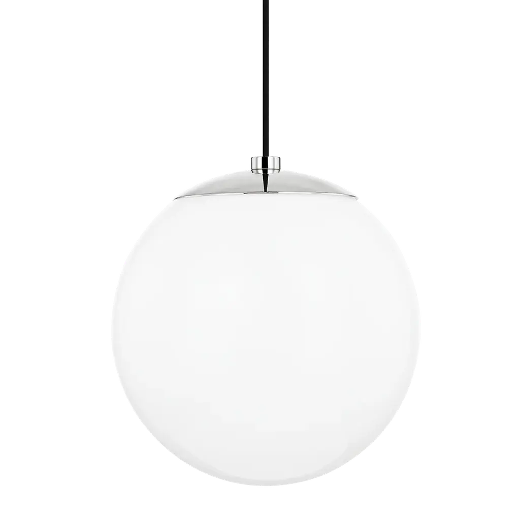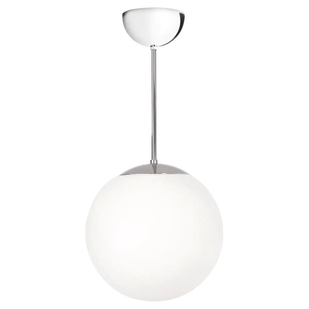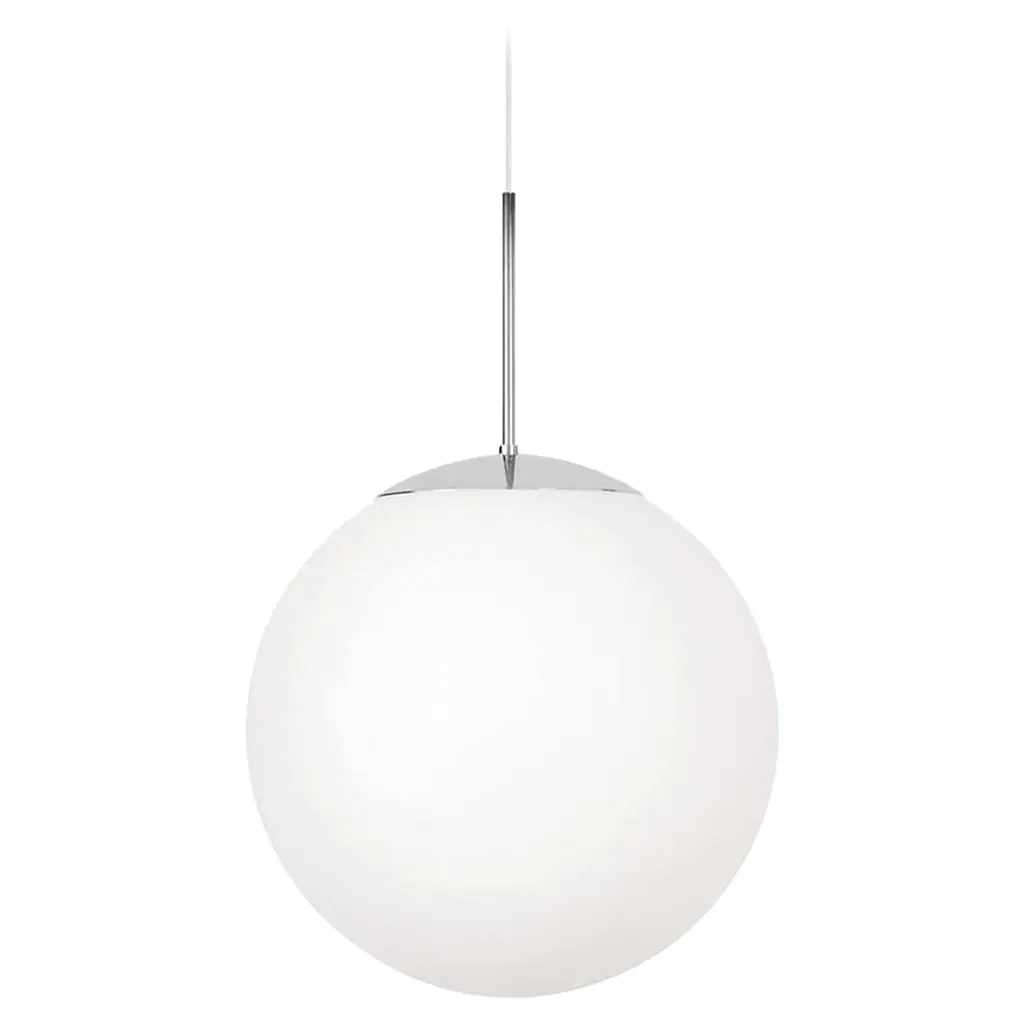Ceiling lamp model glob designed by Konsthantverk and manufactured by themselves.Incredibly beautiful in all its simplicity. Available in several different varieties and sizes. Raw brass or chrome combined with matte white opal glass. Available in other lengths and with other light sources.The production of lamps, wall lights and floor lamps are manufactured using craftsman’s techniques with the same materials and techniques as the first models.Materials and color:Chrome/opal matDimensions:D 9.84 in x H 16.73 in, cord 39.37 inD 25 cm x H 42.5 cm, cord 100 cm Technical details:Max 75 W E27Mounting: Hook mountedConnection: Swedish plug, terminal in canopyThe lamps are wired with standard European wiring.Not UL listed.Indoor use and dry locations only.This lamp is wired for Europe, if used in US or any other country the client will need to convert it.Konsthantverk means “Art” and ‘Craftsmanship’, this Swedish company has been manufacturing lamps for nearly one hundred years. They do all the process: milled, drilled, formed and finished. For several years they ran through its own glassworks in Småland for the manufacture of his lamps glass.They have an entire collection for consumers, but they also produce special products as street lighting on Biblioteksgatan in Stockholm or the ceiling lighting at the Kennedy Center in Washington.The Konsthantverk lamps are honest about their dedication to materials and their process, a lamp made by them is a true handicraft. Their creations embodies simplicity and careful consideration, where materials and design are united.Each lamp from Konsthantverk has in itself a part of Swedish History, since 1921.