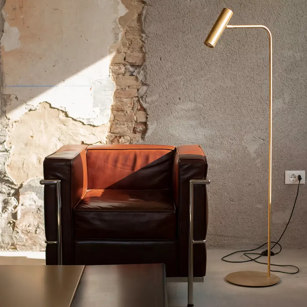 The KYLE floor lamp, handcrafted in Italy, showcases a minimalist design inspired by the cylinder. Made from high-quality brass, its sleek diffuser adds a modern touch to contemporary interiors. A statement of elegance and craftsmanship, KYLE enhances any living space. Available in natural, anthracite, and burnished brass. Please, contact the Concierge for more information.