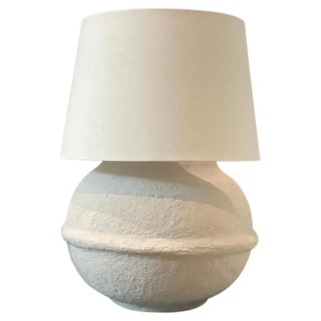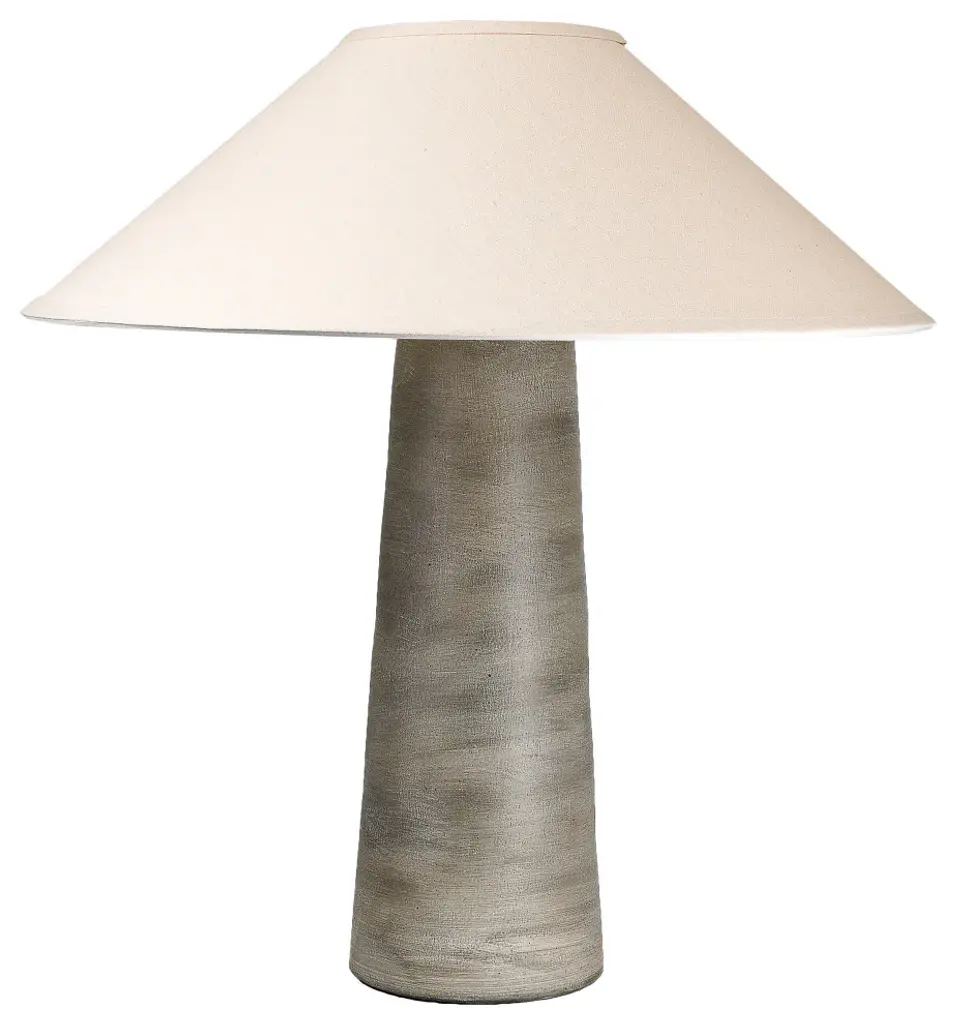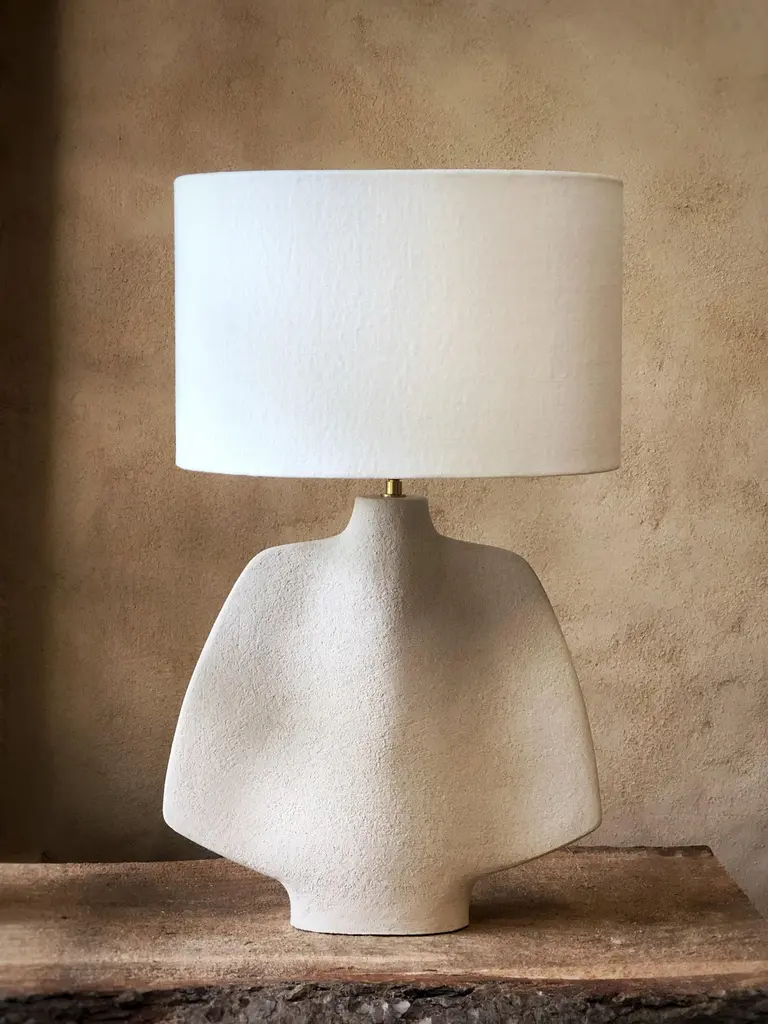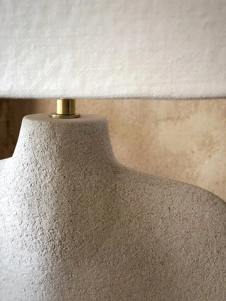 L04 Lamp by Sophie VaidieOne Of A Kind.Dimensions: D 24 x W 35 x H 60 cm. Materials: Beige brutal stoneware with fine chamotte and white linen fabric.All our lamps can be wired according to each country. If sold to the USA it will be wired for the USA for instance. Please contact us.In the beginning, there was a need to make, with the hands, the touch, the senses. Then came the desire to create and imagine objects to accompany everyday life through a timeless and poetic dimension.My relationship with clay began more than 20 years ago. It was a long inner journey before I imagined devoting myself completely to it.My work is first of all a constant search of balance and a capacity for renewal. It is the result of formal research, of the harmonious relationship between the curve and the line. The interaction between the shape and the space it draws around it. The right proportions, the detail of a curve or a line are the common threads of my creations.Then comes the technique. It allows me to inscribe the shape in the stoneware. My training was enriched with very different ceramists, allowing me to expand my knowledge and consciously choose my way of creation.My creativity is nourished by my travels, my inner reflections, my close landscape but also my work as an interior designer and most of all the encounters made throughout my journey.
