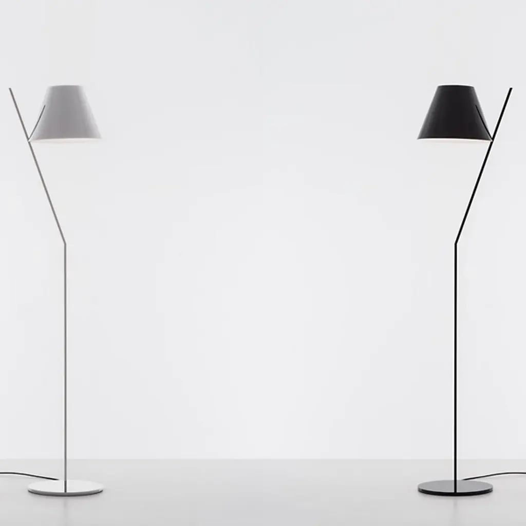 A balance between the classic and chic. The La Petite Floor Lamp by Artemide combines simple elements to make a bold statement. Its traditional style lampshade is crafted from plastic and is attached to the angled stem with a delicate short arm. Within the shade is an energy-efficient LED light source (sold separately) and two diffusers that deliver a soft mix of direct and indirect illumination. Completed with a sturdy round base, this fixture brings a contemporary presence to your living spaces or bedrooms.