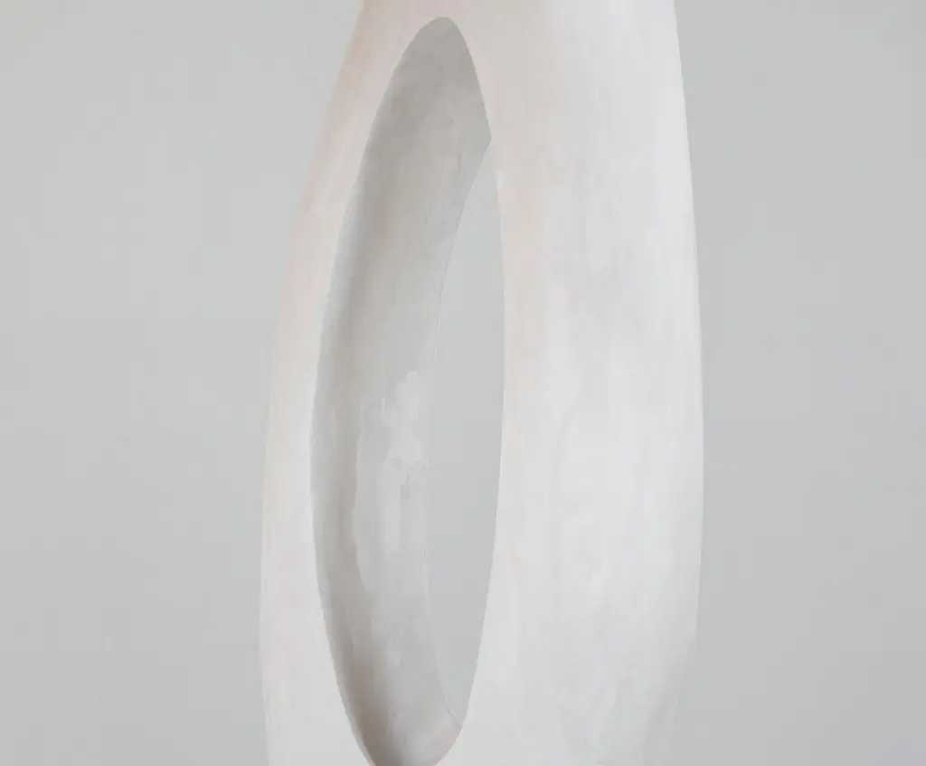 The Lacuna Lamp is a contemporary handmade sculptural gypsum lamp part of the Living Forms collection. The lamp is cast in gypsum and carved by hand. The Longing Lamp stands out as a stunning blend of fine art and functional design. It's a part of our limited Living Forms collection, which features unique, handcrafted sculptural lamps. Each lamp, including Lacuna Lamp, is carefully cast in plaster, hand-carved, and sealed with matt varnish. The uniqueness lies in its captivating form, organic abstract shapes reminiscent of something familiar yet unseen before, stimulating primal human senses.The Lacuna Lamp goes beyond ordinary lighting. It's a work of art that interacts intimately with its environment, stimulating emotions, promoting mindfulness, and fostering well-being. The lamp's innovative design and meticulous crafting process make it a valuable addition to any setting. Moreover, its purpose—to assist with anxiety and depression through mindfulness—underscores its worth.Lacuna Lamp is a hand-carved piece, cast initially in plaster and sealed with a matt varnish. Its black/gray tone-on-tone effect gives it a unique aesthetic appeal. Hidden inside are two dimmable LED lights that subtly illuminate the inner part of the sculpture. The lamp's condition is impeccable, having been crafted with the utmost attention to detail.The Lacuna Lamp is the product of a desire to connect art with functionality, drawing inspiration from the modernist philosopher Henri Bergson's intuitive approach. Each lamp in the Living Forms collection is designed to help people connect with their primal nature, leading to enhanced well-being. This is achieved by creating recognisable yet novel forms through traditional carving techniques and experimenting with pigmented plaster.The Lacuna Lamp is customisable in terms of colour, enabling you to choose a variant that best fits your space. It's wired for both the USA (120V) and Europe (220-240V), with two hidden dimmable LED lights inside. This handcrafted, limited edition lamp merges organic shapes and modern design elements, making it not just a lamp, but a meaningful piece of art that promotes tranquility and mindfulness.