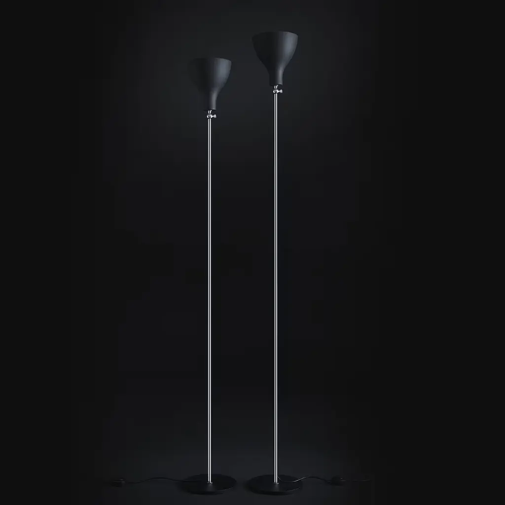 This stunning floor lamp is an elegant addition to a modern home, where it will imbue with sophisticated minimalism an entryway, a study or a living room, either alone or combined with others in the same Lady V collection. Its slender shape and multi-directional shade are inspired by the silhouette of a woman and are made of a steel base with an opaque black finish, from which a polished brass structure stems. The shade has a glossy black finish.