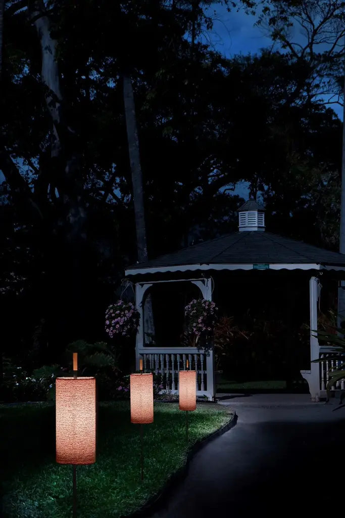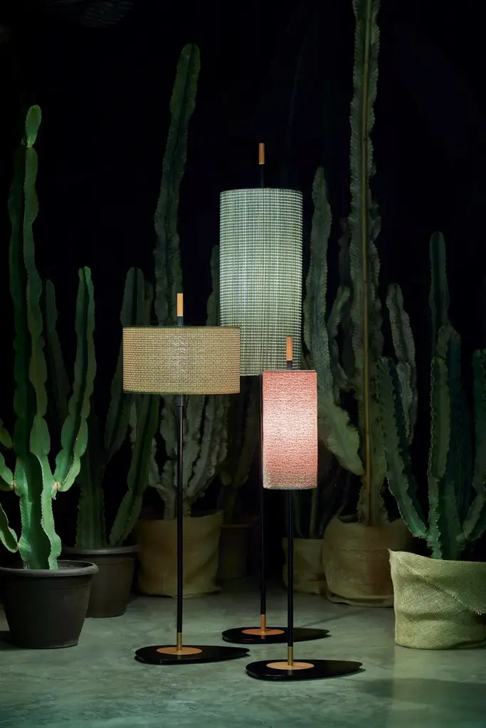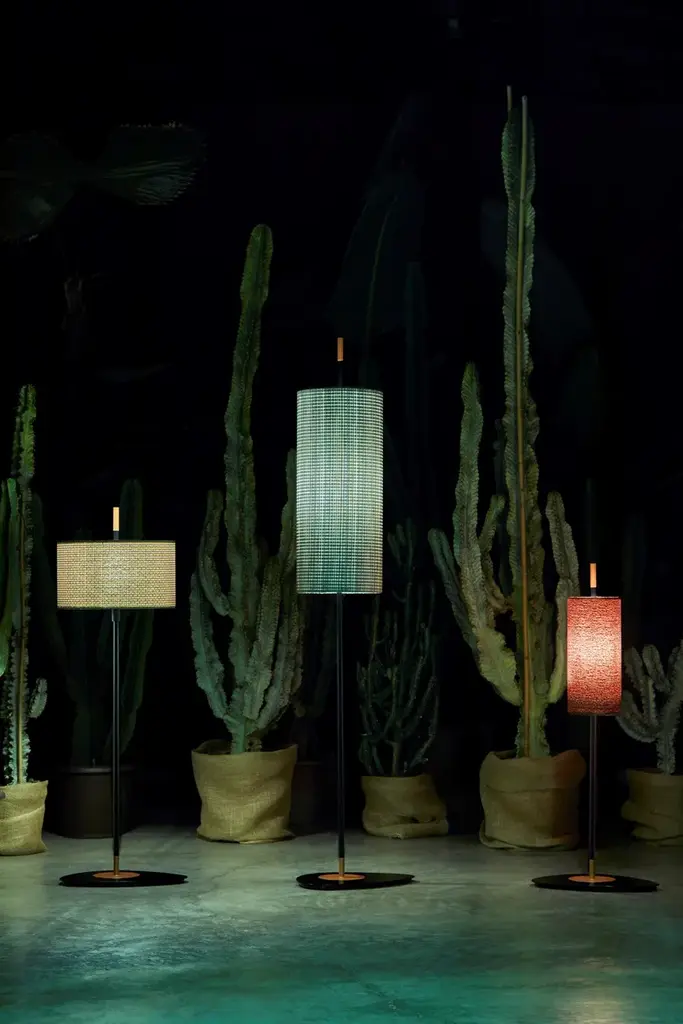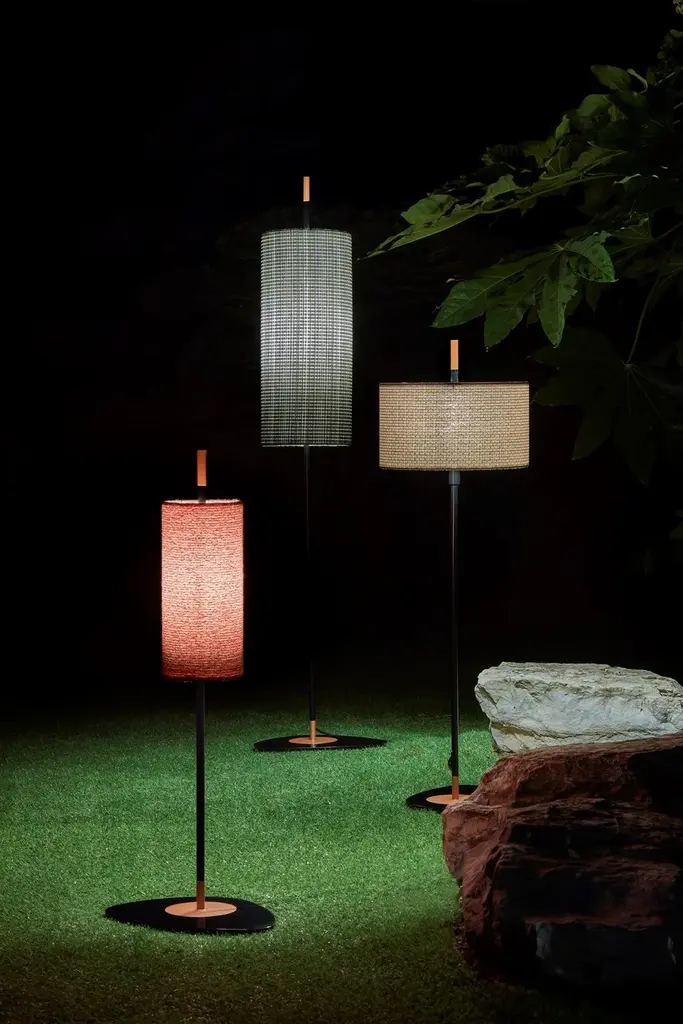 Lagoon, the new collection of outdoor lamps designed by Servomuto. The lamp’s elegant and refined style, more familiar in a domestic setting, is here transferred to the outdoors, giving it an almost decontextualised use.The collection is inspired by the vertical lines and simplicity of the Typha plant, typically found in marshy areas on the banks of rivers and lakes. Thanks to its graceful shape, in the 1970s it was a very characteristic decoration of domestic interiors.Like the plant, the Lagoon collection also has three different sizes – small, medium and large – with a matt-black lacquered structure and copper details, which allow the lamps to be grouped together, creating the impression of a “luminous forest”.In addition to the version with base, a fence-mounted option is also available. Directly planted in the ground, this recalls the shape of the Typha plant and integrates better with the external environment.As usual with Servomuto’s projects, the lampshades have a linear and minimalist form, and are covered in Pierre Frey fabric. They are offered in three different finishes: Noumea Goyave, Bayamo Mimosa and Dominica Caraibes.Light source:1 x 9W E27 T8 Tubular LE 60W max