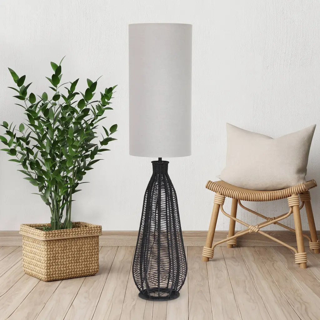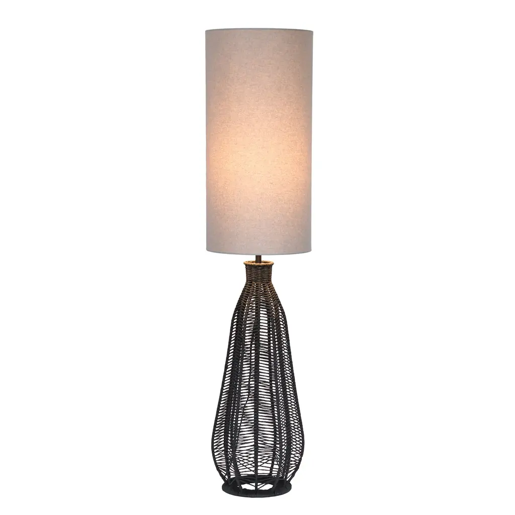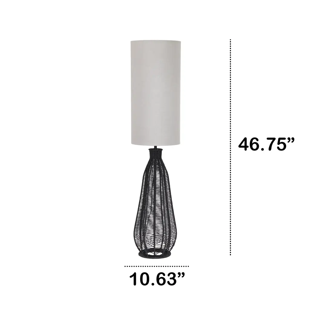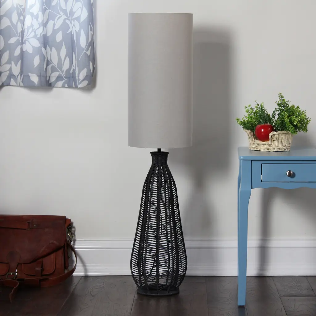 Lalia Home 46.75" Organix Vintage Rattan Wicker Style Paper Rope Floor Lamp With Light Gray Fabric Shade - Black