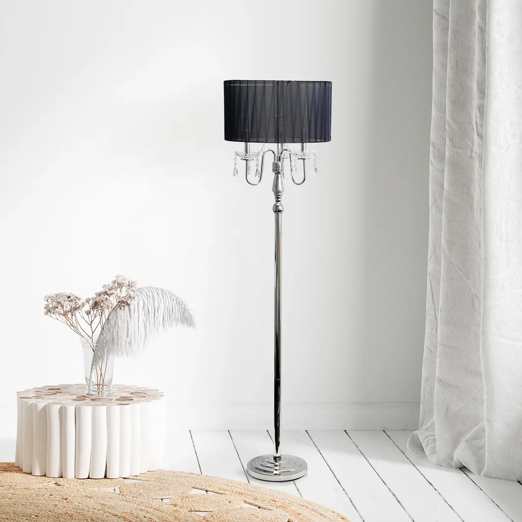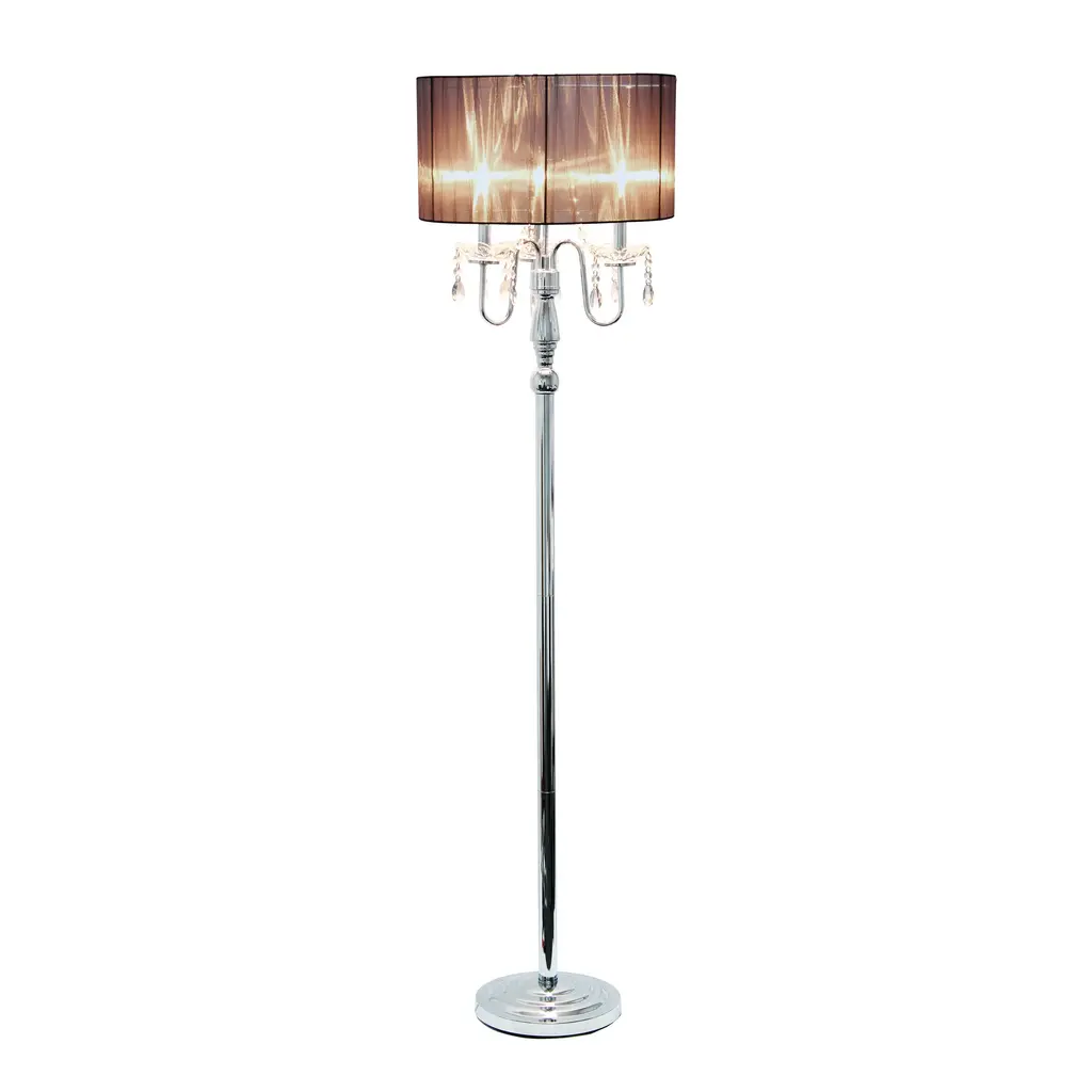Lalia Home 62" Glamorous Chrome Cascading Crystal Floor Lamp - 62 - Chrome/black