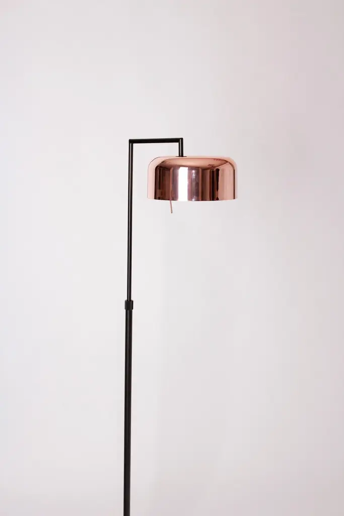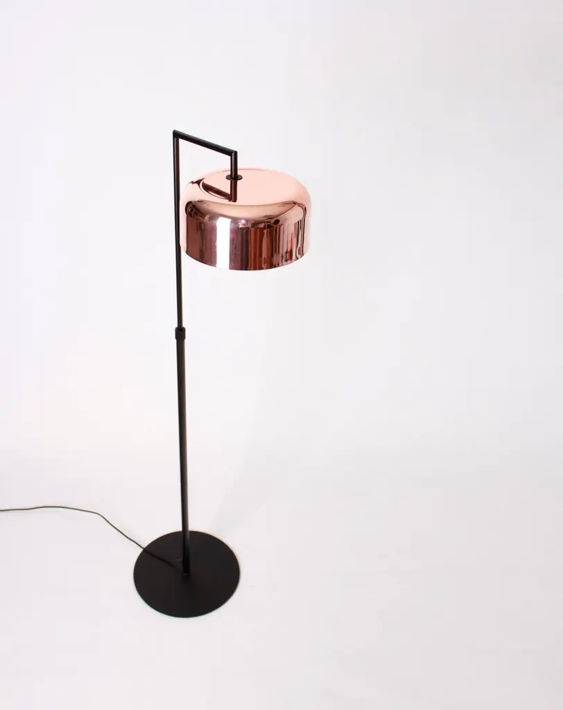 LALU+ Pendant version has gained so much popularity that we’ve introduced LALU+ Desk and Floor versions as well. By replacing glass with steel, this classic silhouette has been reinvented with a modern twist. Fuse a bit of retro with a splash of modern, render it utilitarian, and you’ve got LALU+ Floor Lamp. Allow this light to enliven your surroundings.Material:SteelColor:Copper + matt blackLight Source:E26 1 x Max 60WSize:L 18.1" x W 11.8" x H 33.4~55.1"Feature:Shade rotatable & height adjustable.