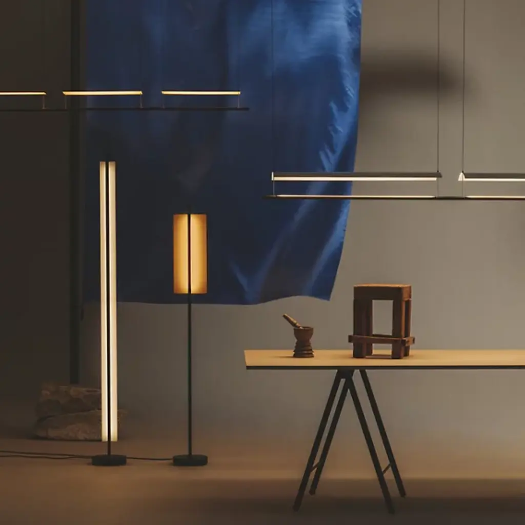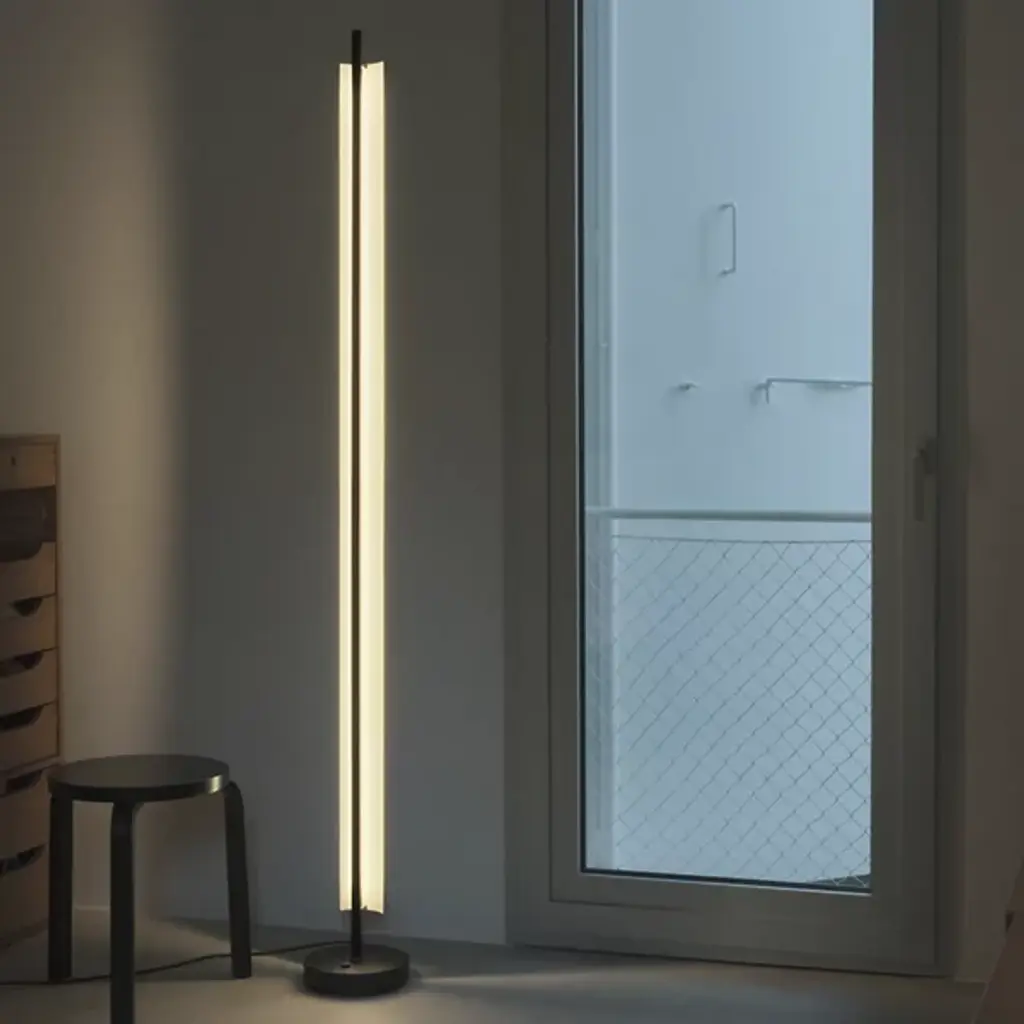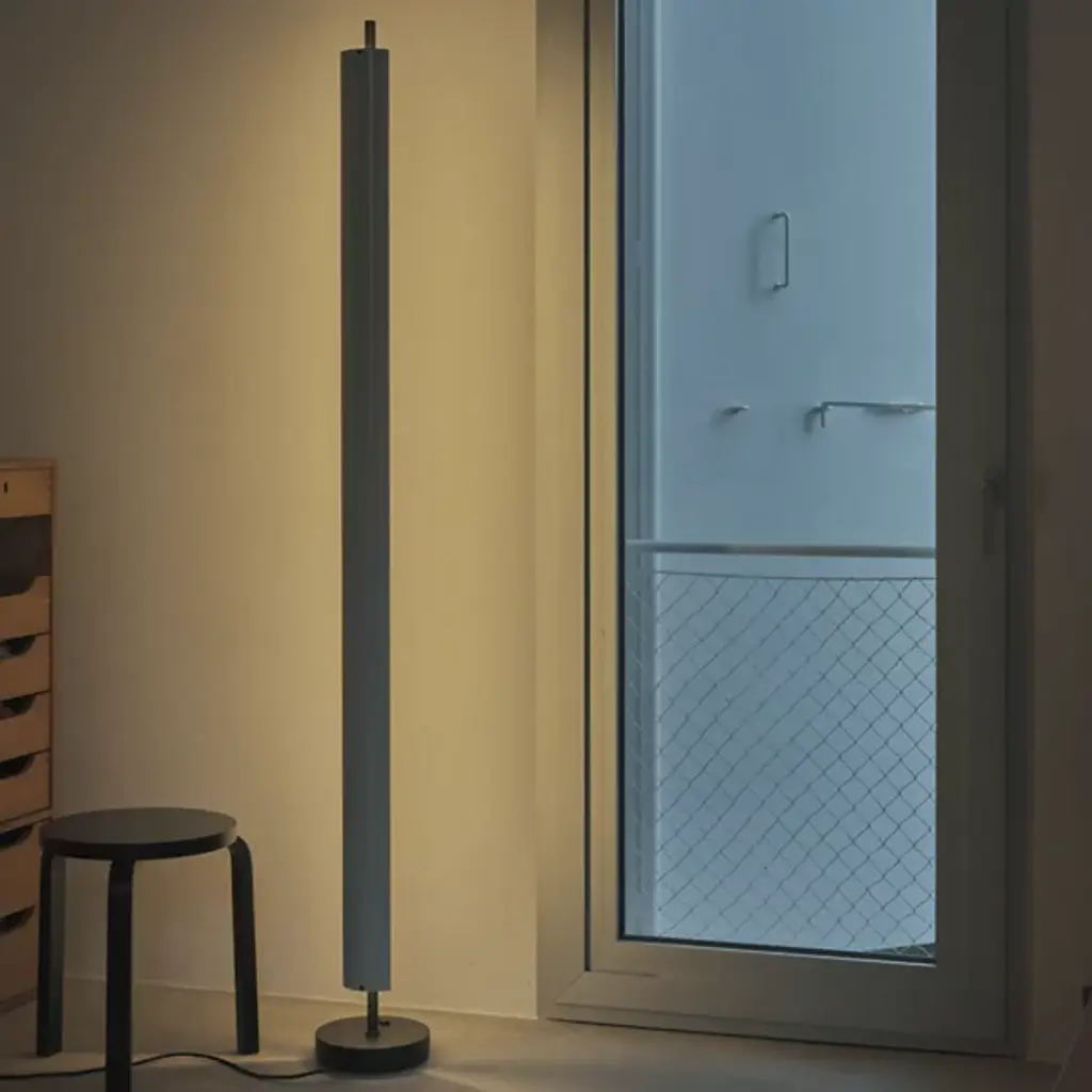 The Lamina 165 LED Floor Lamp from Santa & Cole combines thoughtful design with ambient functionality. Designed by Antoni Arola and made in Spain, this floor lamp features a tall, softly glowing rectangular polycarbonate shade that floats above a minimal, anodized aluminum frame. Its slender central stem supports the structure with subtle grace, while energy-efficient LED lamping at 37W (1484 Lumens) casts a warm wash of light. A base-mounted button dimmer and on/off switch offer convenient control, allowing you to fine-tune the atmosphere with ease.