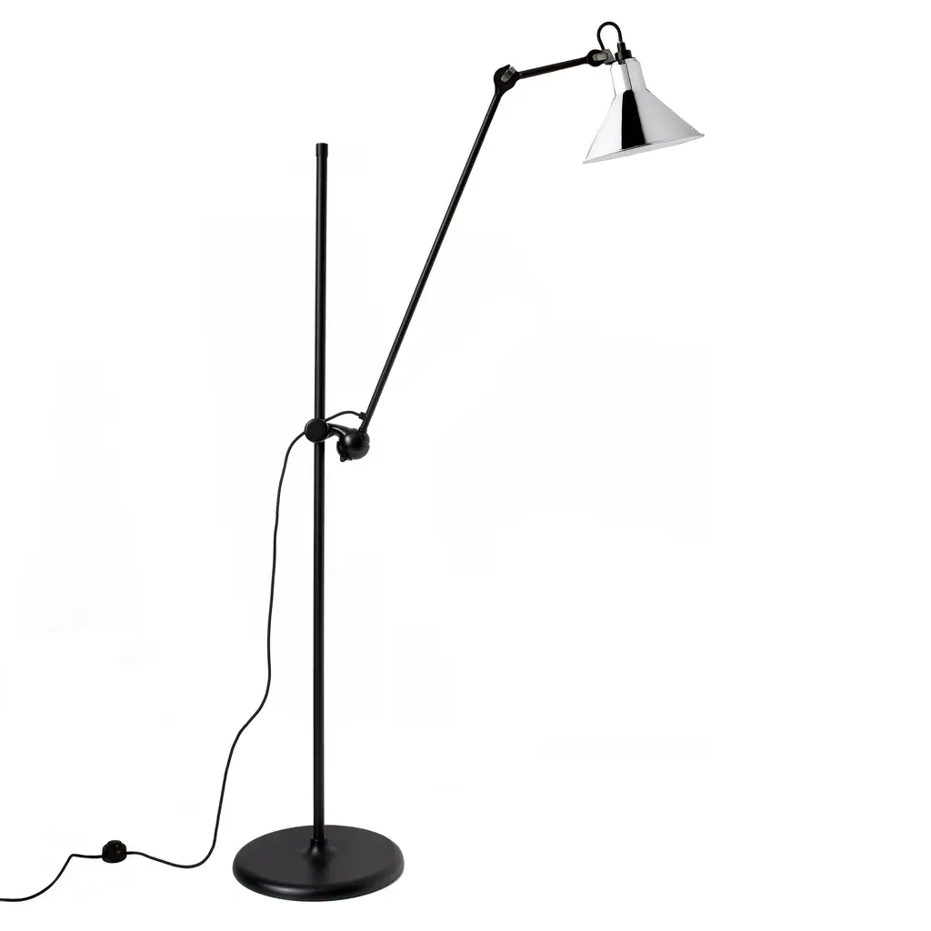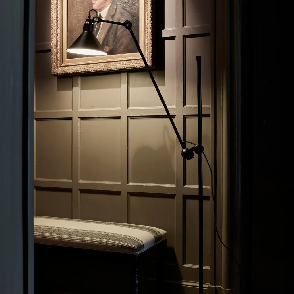 Gras N°215 combines the pivoting arm of the desk model with a rod-like stand to adjust its height. Legendary designer Bernard-Albin Gras first conceived the now-iconic lighting in 1921 with a series of lamps for offices and industrial environments that were both an early example of ergonomics and assembled simply without any extraneous screws or welded joints. As handsome as it is functional, the floor lamp comes with the choice of either a round or conic metal shade