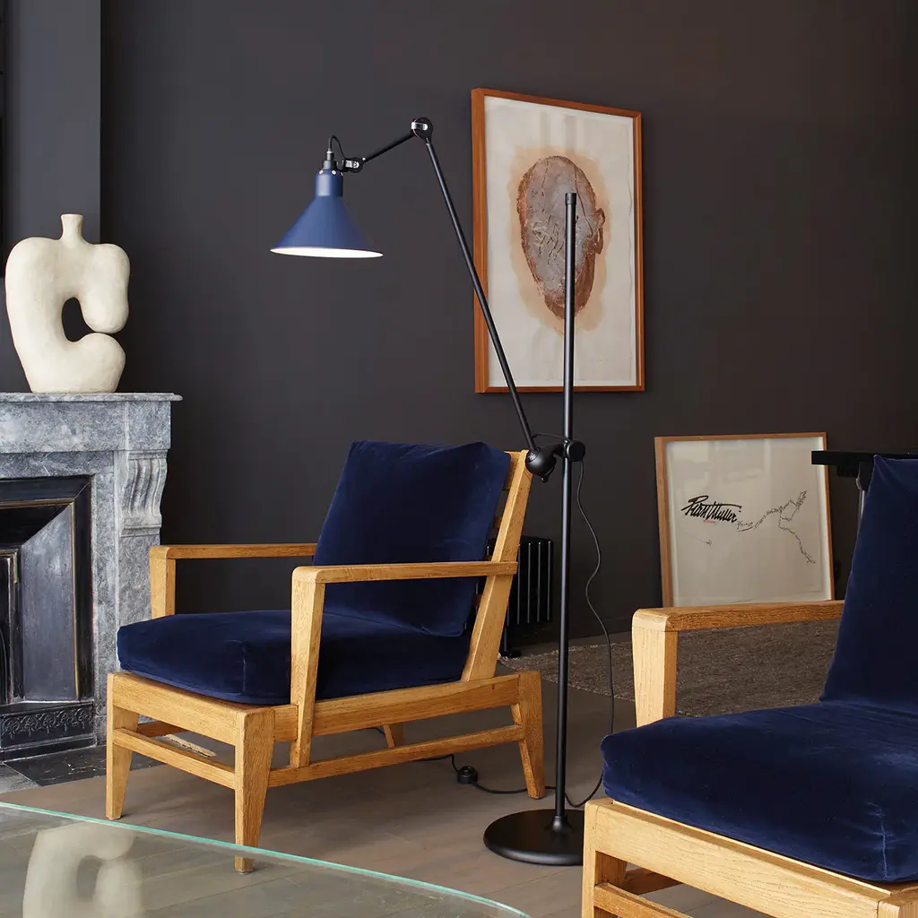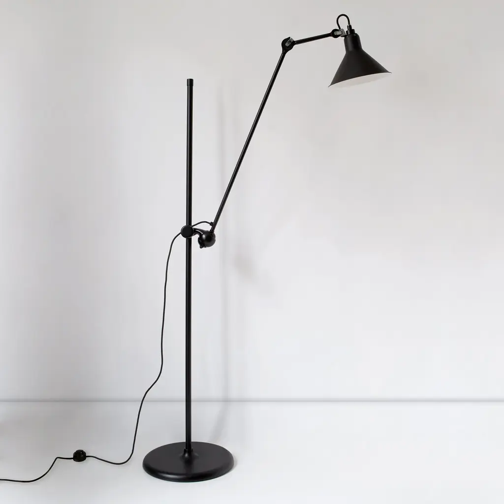 Gras N°215 combines the pivoting arm of the desk model with a rod-like stand to adjust its height. Legendary designer Bernard-Albin Gras first conceived the now-iconic lighting in 1921 with a series of lamps for offices and industrial environments that were both an early example of ergonomics and assembled simply without any extraneous screws or welded joints. As handsome as it is functional, the floor lamp comes with the choice of either a round or conic metal shade