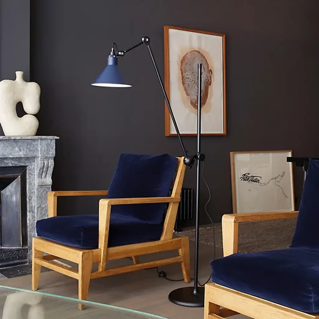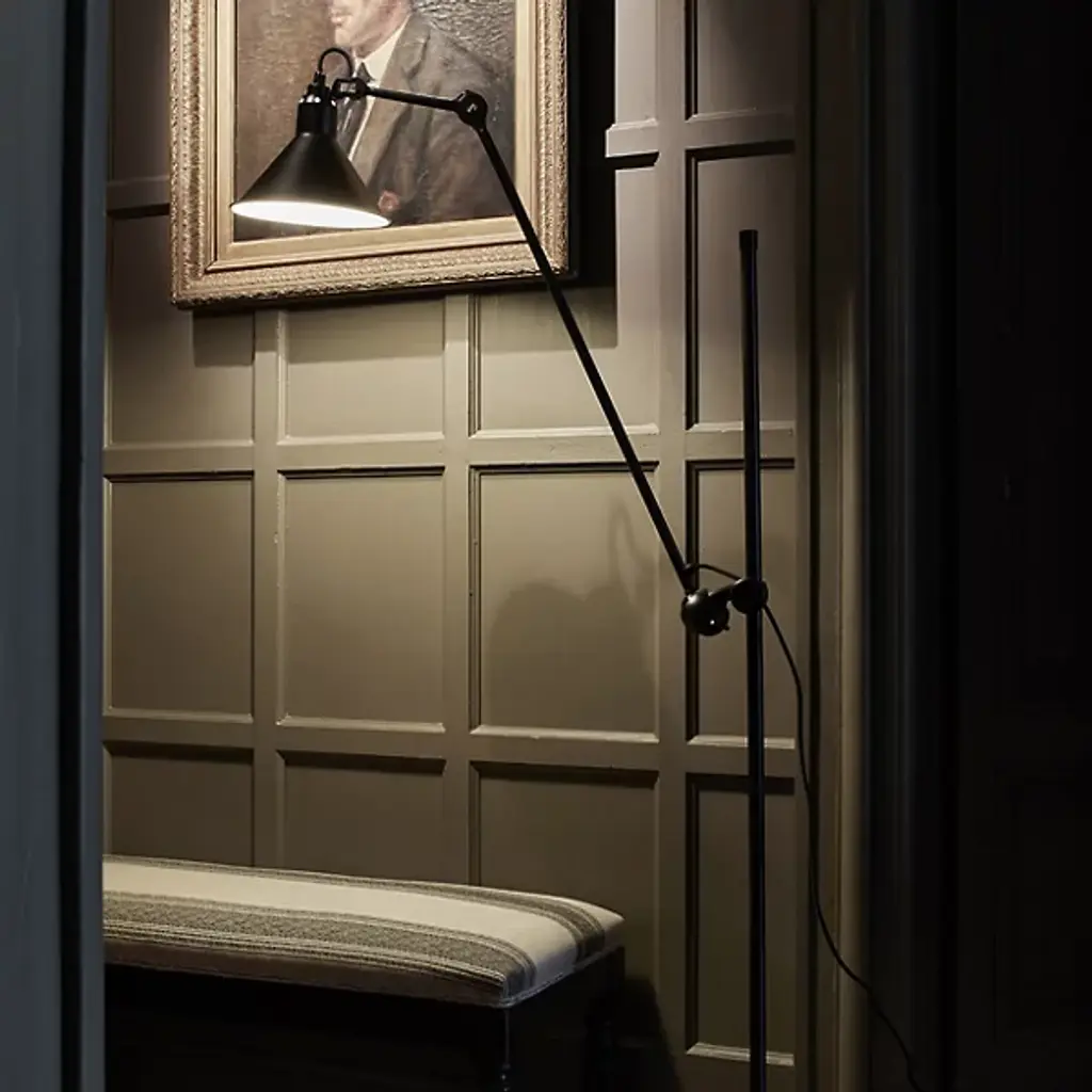 Embrace the simple stylings and eye-catching formulation of the Lampe Gras N°215 Floor Lamp by DCW editions. An expressive piece with design originating from the 1921 office and factory fixtures by Bernard-Albin Gras, this piece deliberately lacks screws or hard, welded joints to keep the focus on a smooth functionality. Steadied by a wide disc base, it sends up a thin steel stem that branches out to an adjustable mounting for two posable arms supporting a flared metal shade that focuses the lamping within it into a broad beam of light.