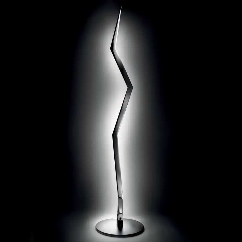 LampOda is a light design object inspired by Italian Futurism, embodying dynamism, speed, and strength. Its polished steel structure integrates the light source, creating a captivating link between form, concept, and energy. Reflective even when off, the 3500K warm white LED enhances its presence when lit, making LampOda a striking visual centerpiece that unites surrounding decor.