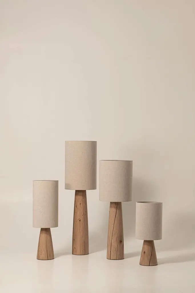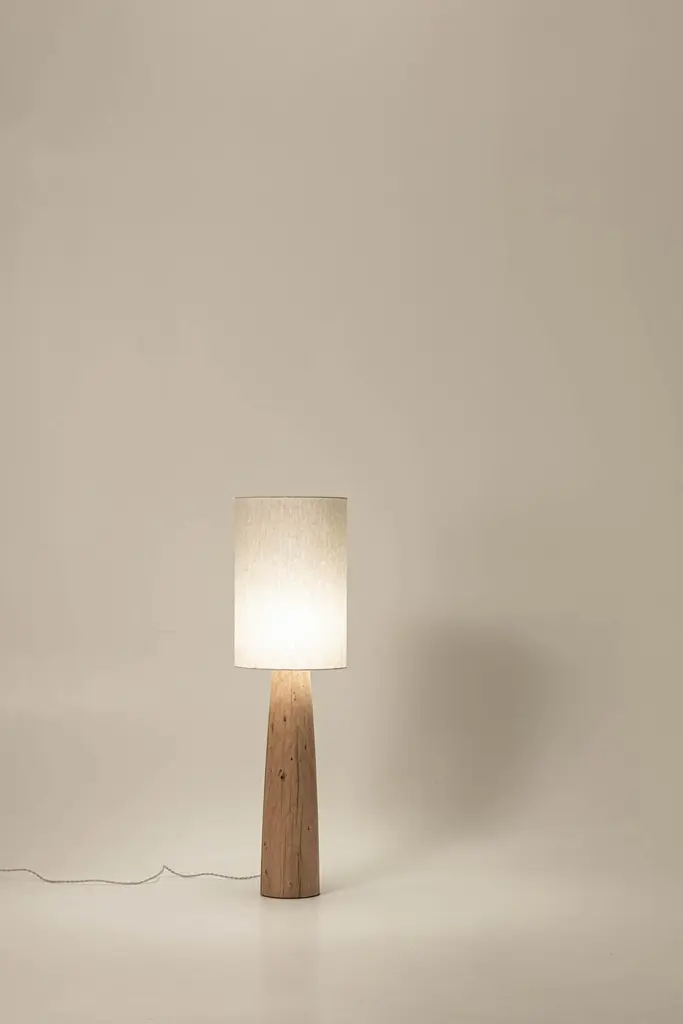 Laps FL4L lamp by Jeroen De Ruddere.Dimensions: D 33 x H 120 cm.Cord lenght: 175 cm.Dimmable: Yes.Materials: Oak Brutal nature and textile.All pieces are CE certified.Each lamp is handmade so the measurements may differ minimally.