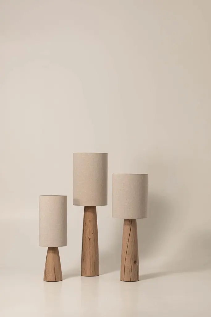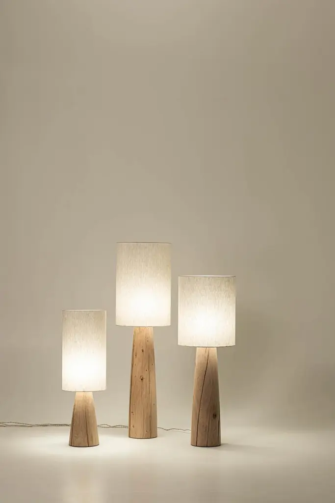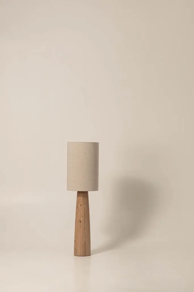 Laps FL4L lamp by Jeroen De Ruddere.Dimensions: D 33 x H 120 cm.Cord lenght: 175 cm.Dimmable: Yes.Materials: Oak Brutal nature and textile.All pieces are CE certified.Each lamp is handmade so the measurements may differ minimally.