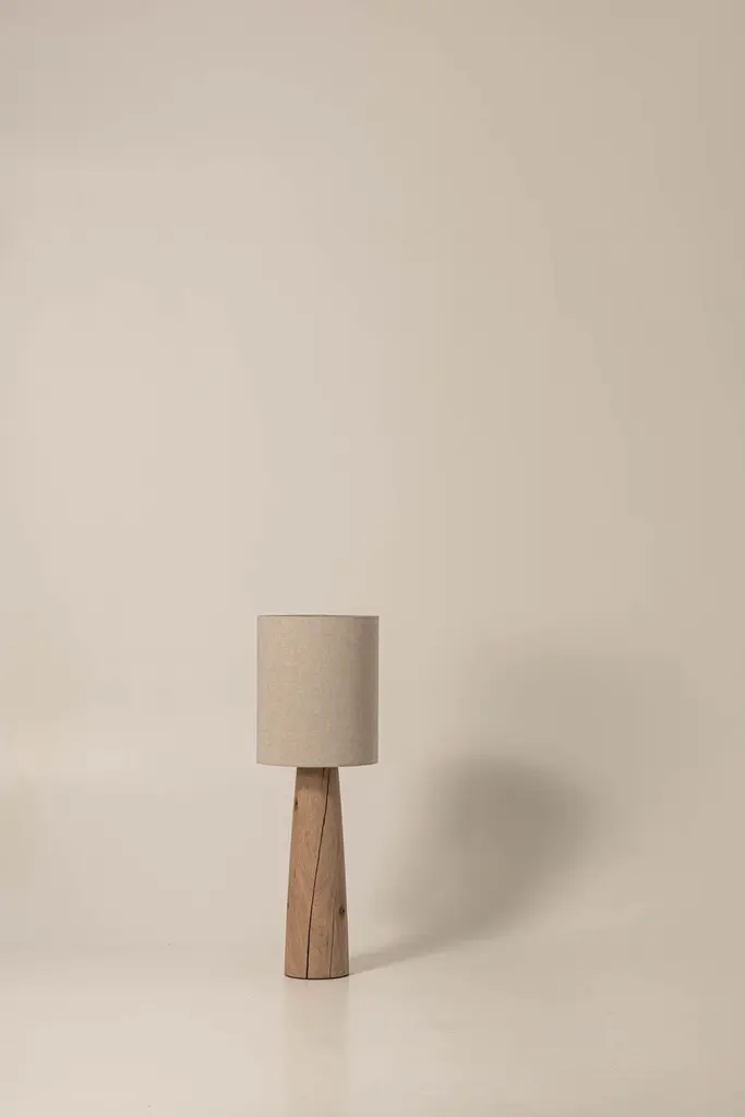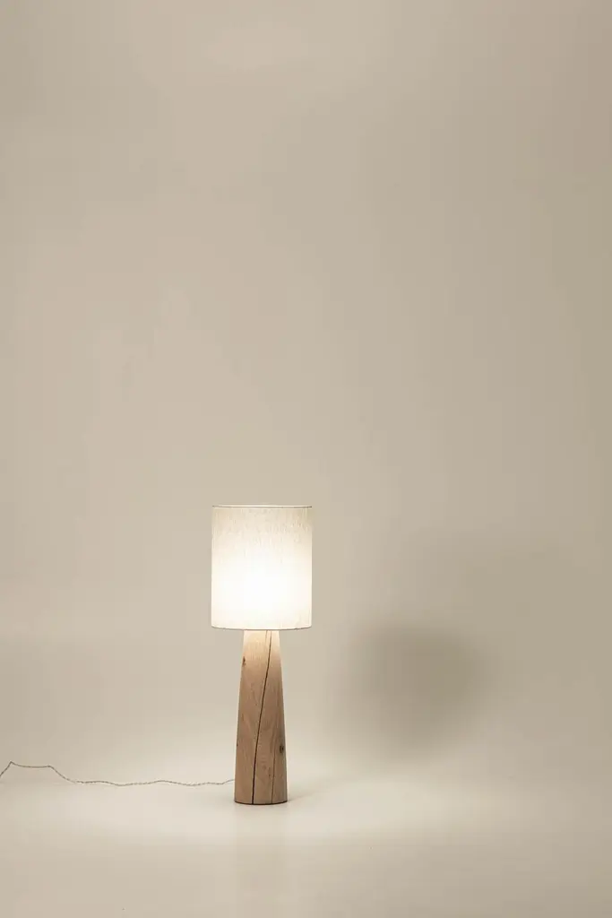 Laps FL4M lamp by Jeroen De RuddereDimensions: D 33 x H 100 cmCord Lenght: 175 cmDimmable: YesMaterials: Oak Brutal nature and textile.All pieces are CE certified.Each lamp is handmade so the measurements may differ minimally.