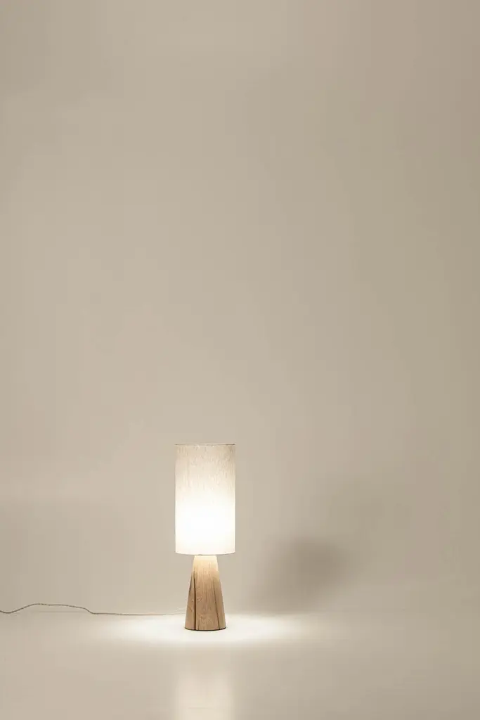 Laps FL4S lamp by Jeroen De RuddereDimensions: D 25 x H 80 cmCord Lenght: 175 cmDimmable: YesMaterials: Oak Brutal nature and textile.All pieces are CE certified.Each lamp is handmade so the measurements may differ minimally.
