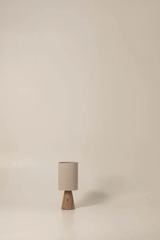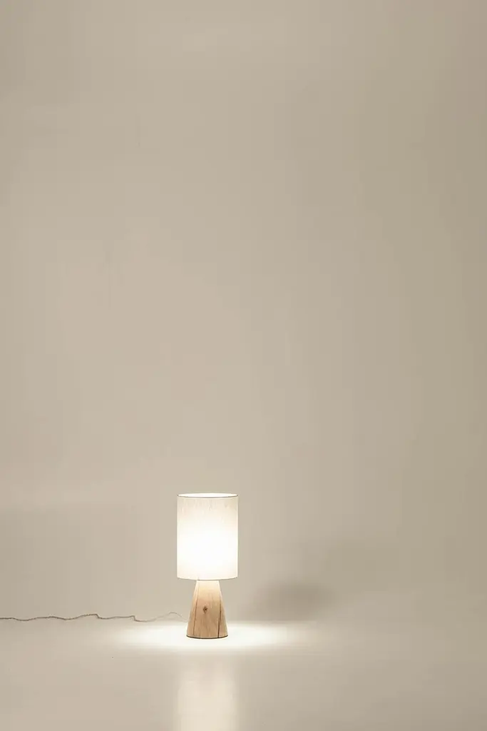 Laps FL4XS lamp by Jeroen De RuddereDimensions: D 25 x H 61 cmCord length: 175 cmDimmable: YesMaterials: Oak Brutal nature and textile.All pieces are CE certified.Each lamp is handmade so the measurements may differ minimally.
