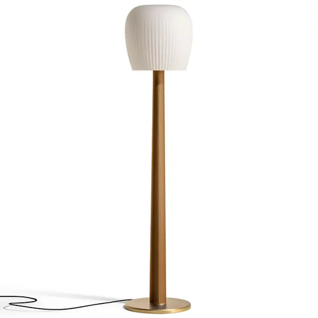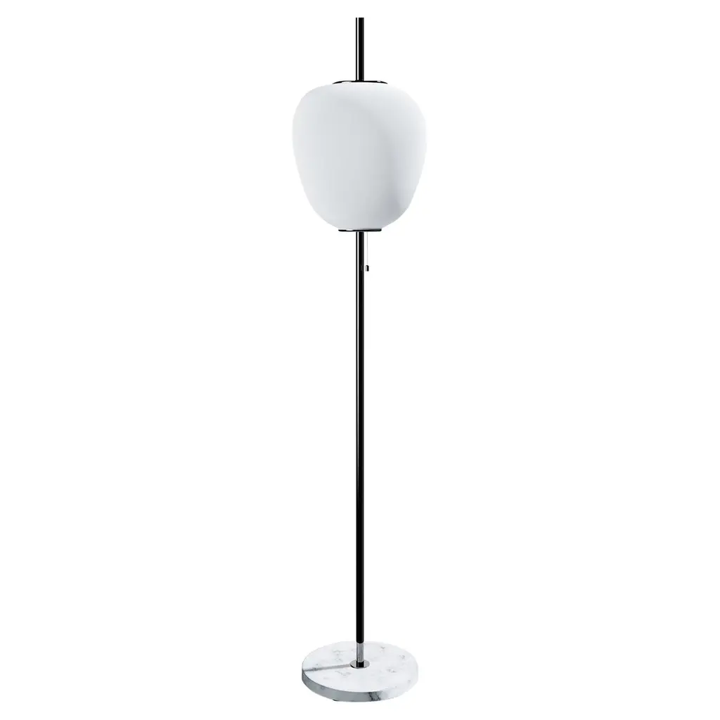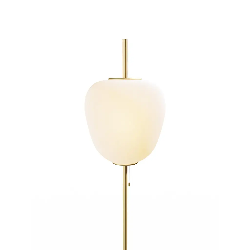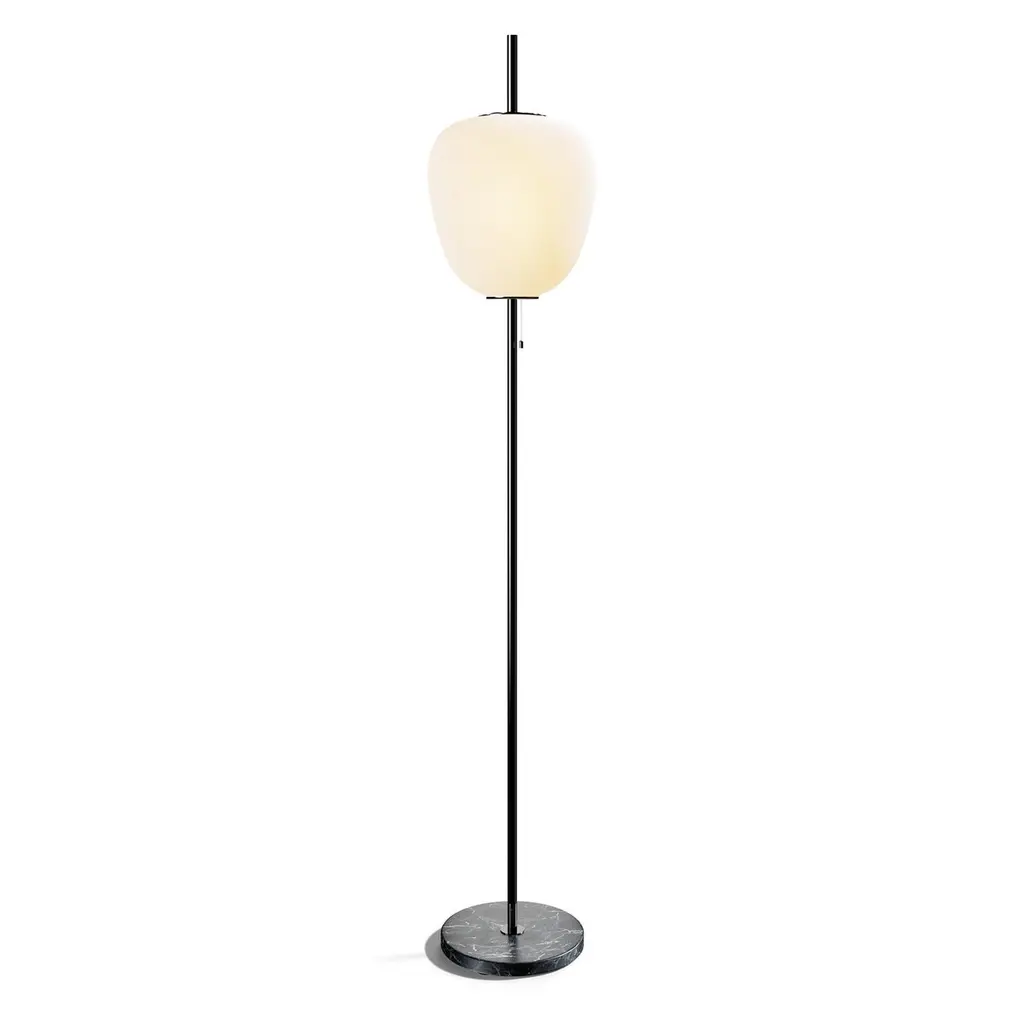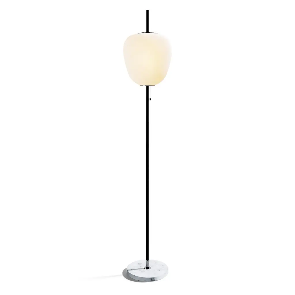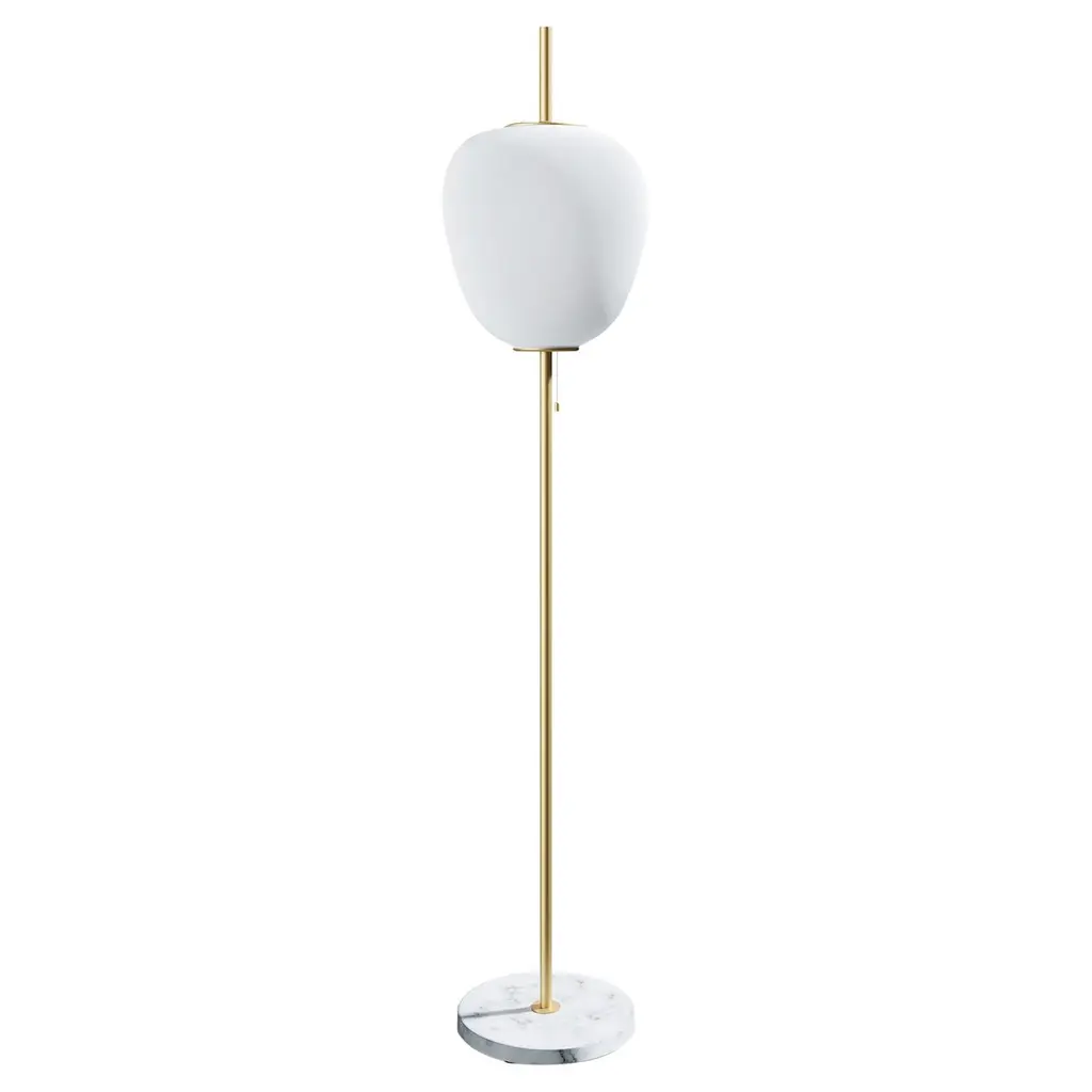 Large Joseph-André Motte J14 floor lamp in brushed brass and gray marble for Disderot. Originally designed in 1957, this sculptural floor lamp is a newly produced numbered edition with authentication certificate made in France by Disderot with many of the same small-scale manufacturing techniques and craftsmanship as the original run. Executed in high quality metal, marble and double layer opaline glass.Joseph-André Motte was born in 1925 in the Hautes-Alpes but it was in Paris at the School of Applied Arts to Industry that he studied under the direction of Louis Sognot and Rene Gabriel, two of the great masters of French modernity. He graduated from his class in 1948 and in 1952 he joined the studio of the third French master, Marcel Gascoin. It is there that he meets Pierre Guariche and Michel Mortier with whom he develops a friendship and a deep professional complicity. Together they created the Atelier de Recherche Plastique (ARP) in 1954 to present French-made practical, comfortable, modern furniture at a reasonable price. His great capacity for formal invention is often copied, and his style remains emblematic of French twentieth century design.Price is per item. Comes in manufacturer's box with “Certificate of Authenticity”. Available in unlimited quantities in choice of gunmetal, chrome, polished or brushed brass stem as well as gray or black marble base. Also available in a smaller 64.9" tall model. Please note that marble can vary from item to item due to the organic nature of the material.Accommodates 1x 75W equivalent standard medium base LED bulb. Not UL listed, but recommended UL listing possible from authorized 3rd party vendor upon request for an additional fee.In-stock lead-time 7-8 weeks. Out of stock can take up to 12 weeks or more. Stock availability can change at any time. Made to order.