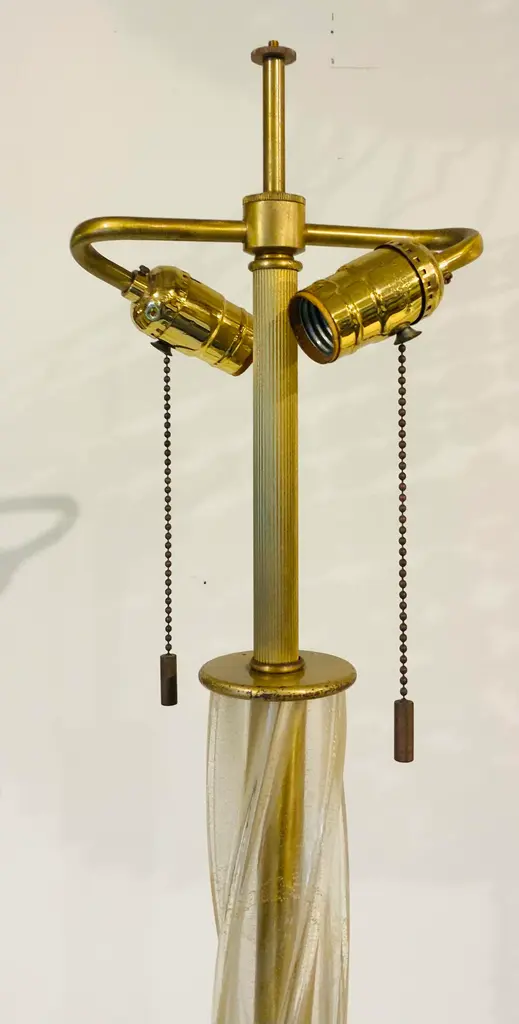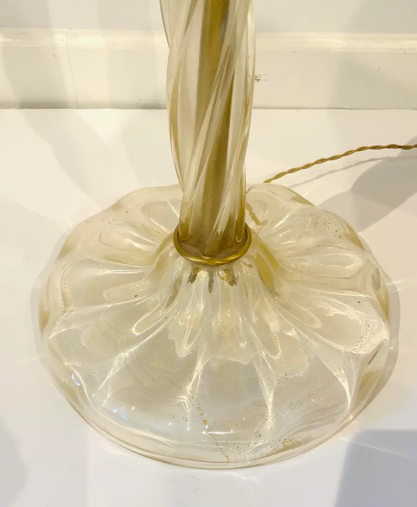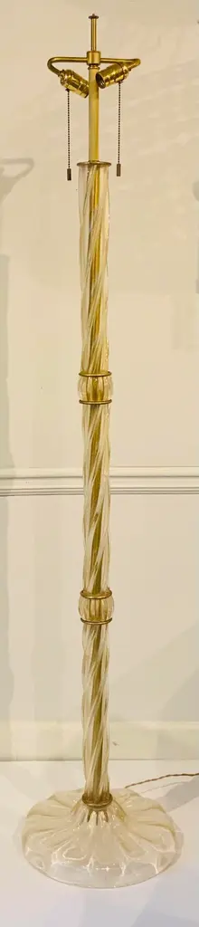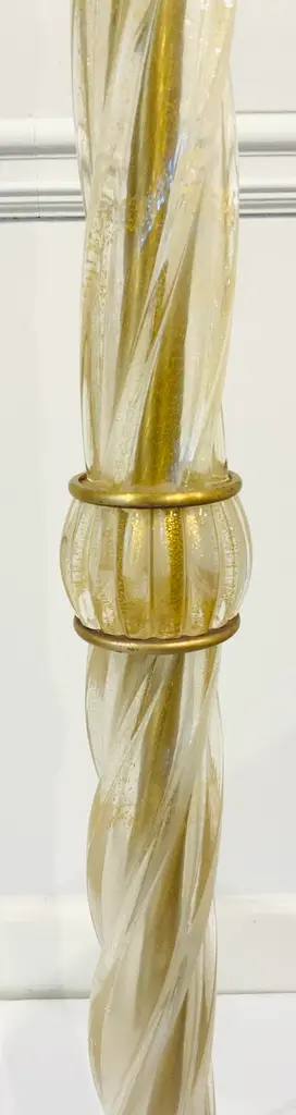Elegant Large Modern Italian Murano Glass Floor Lamp, brass finished metal accents, gold flecked glass