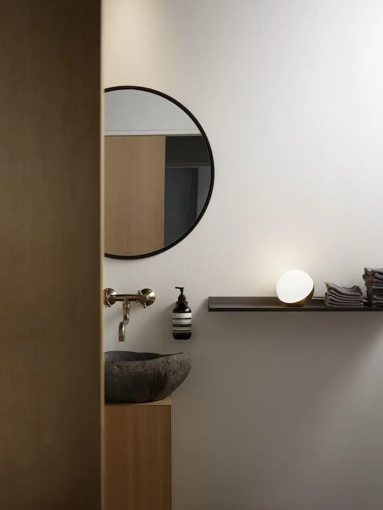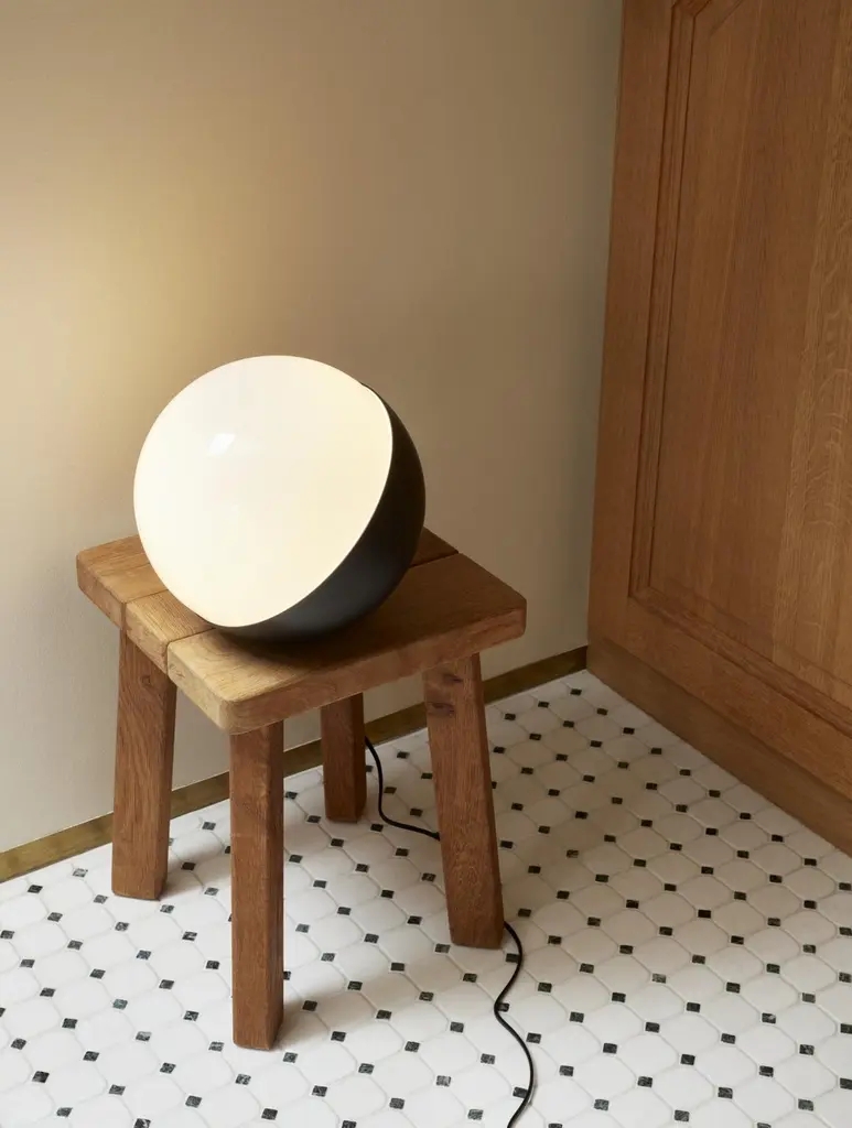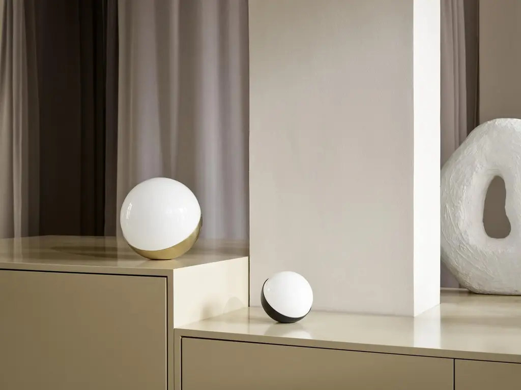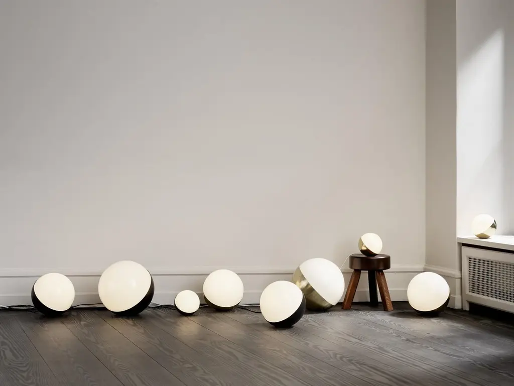 Large Vilhelm Lauritzen 'VL Studio' Brass and Glass Floor Lamp for Louis PoulsenThis innovative lamp is based on Lauritzen's original studio wall lamp for Radiohuset, the headquarters of the Danish Broadcasting Company, which indicated with a red or green light whether the studio was recording. Executed in mouth blown, triple-layered opal glass and deep-drawn aluminum or brass, the 'VL Studio' is an authorized re-edition from Louis Poulsen. It emits a warm, glare-free light with glossy opal glass radiating a pleasant glow to its surroundings. The unique design allows for versatility and lends itself to applications as both a table or a floor lamp. Hand-crafted with careful attention to detail from the highest quality materials in Denmark.Price per item. Available in unlimited quantities in three sizes and in choice of slightly brushed brass or wet painted matte black aluminum frame. Also available as a wall-mounted version in a separate listing. This listing is for the large sized 'VL Studio' table lamp in brass and glass. In-stock lead time 1-3 days. Out of stock lead time can add 8 weeks or more. Please note that inventory availability is subject to change at any time. For time-sensitive orders, please inquire prior to purchasing.Accommodates a single 60W equivalent standard medium base LED bulb. Bulb not included. UL listed. Ships with 8.2' cord in black for black variant or white for brass. On/off switch on cable; electronic dimmer switch (requires dimmable lamp). Made to order.All sales are final.